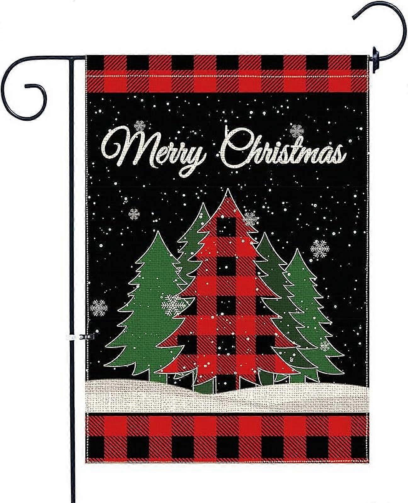 Pinata Christmas Tree Garden Flag 28x40 Inch, Double Sided Outdoor Winter House Flag, Red Buffalo Plaid Merry Christmas Banner, Burlap Yard Decor