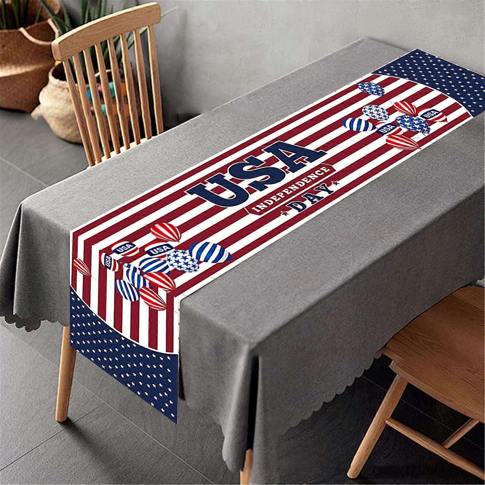 Giyblacko Watercolor Strips Table Runner 13x71in, Patriotic Holiday Decor for 4th of July, Memorial Day, Independence Day, Home Party