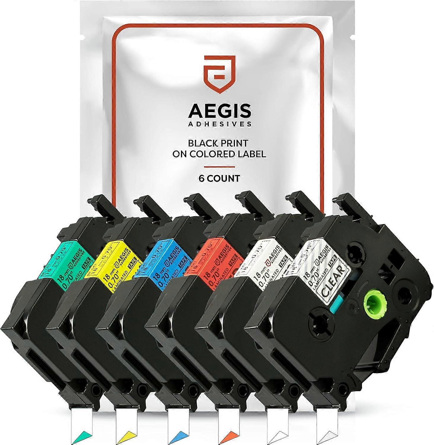 - 6 Color Label Maker Tape Replacements for Brother P-Touch TZe Laminated Tape TZE-241 TZ-241 TZe241.