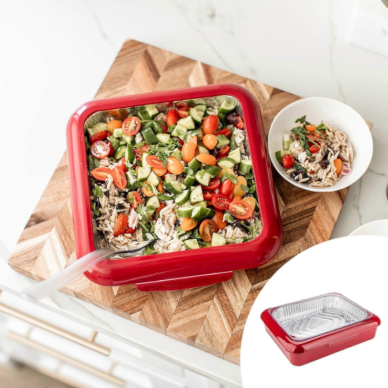 Stackable Aluminum Foil Tray Holder Set, Covered & Insulated, compatible with food storage, ideal for travel, picnics, parties