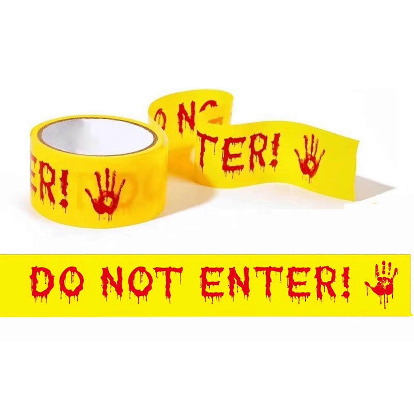 HKUKY Halloween Decorative Tape, 1.9" x 8FT Yellow, Do Not Enter Tape With Stains, Horror Decorative Tape For Halloween Party Decorations