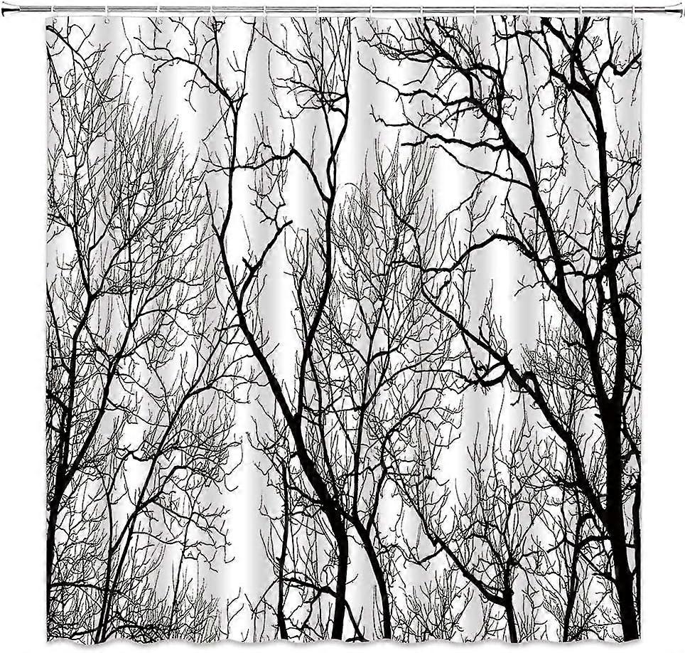 Forest Tree Shower Curtain 60x72 in Polyester, Compatible with Bathroom Decor, Tribal Birch Fall Horror Art, Hooks Included