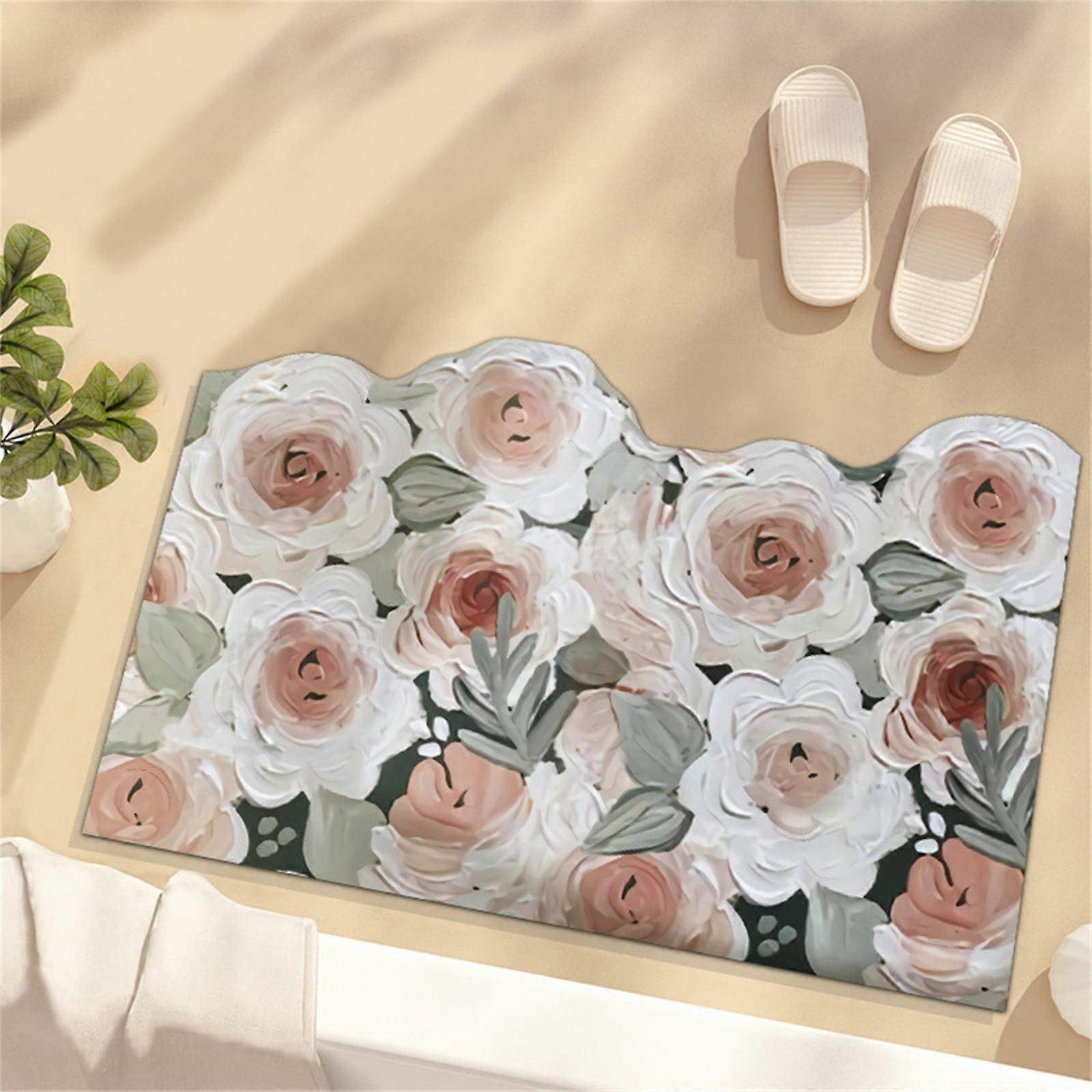 HKUKY Bath Mat Vintage Floral Bathroom Rugs Absorbent Quick Dry Bathroom Mat Non-Slip Bath Rugs