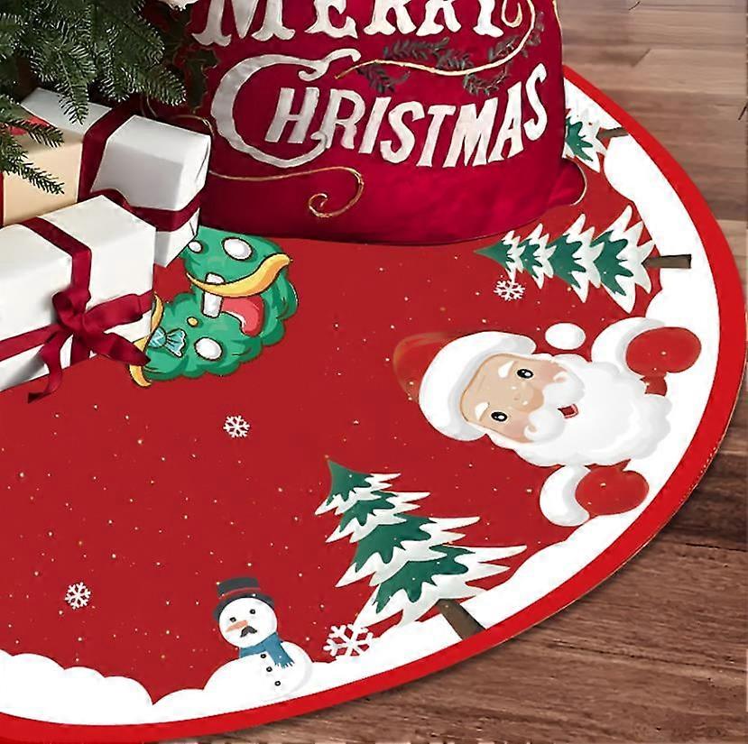 【Soft Material】The Christmas tree skirt is made of soft polyester, which is comfortable to touch and light in weight. Easy to store and use for many seasons to come. 【Perfect Christmas Touch】Our Christmas tree skirts are origional designed and vibrant printed. With a range of unique designs and colors, it will be a perfect christmas touch for any christmas decor theme. It will cover the stand of your christmas tree and any unsightly wires, to give your festive home an uncluttered look. 【Perfect Size】The Christmas tree skirt measures 48 inches/120 cm in diameter. This generous size not only conceals the tree stand but also enhances the overall appeal of your Christmas tree, making it look fuller and more attractive. 【Wide Application】Ideal for both indoor and outdoor Christmas decorations. Place it anywhere you desire - living room, bedroom, garden, bar, hotel, home, school, store, office, supermarket - creating a favorite tree skirt loved by both pets and kids during the winter Christmas season. Experience the joy of family togetherness. 【Easy to Clean】The Christmas tree skirt is easy to clean, you can wipe it with damp cloth or hand wash it, and then hang it to dry, which will save you a lot of time and effort. Christmas Tree Skirt: Our Christmas tree skirt is made of burlap with Christmas-related patterns, high quality, not easy to wear, add color to your Christmas atmosphere. Double-layer Design: Two layers of Christmas tree skirt (cotton and polyester), bright and colorful. Well-made, thick and durable, wrinkle-free, edge trimmed with black cloth, not easy to loosen, easy to put away and store. Anti-UV, anti-fading, can be used for many seasons. Easy to Use: Just put the Christmas tree skirt at the bottom of the tree and close it on the back with 2 Velcro closures, quick and easy to decorate, no ties required. Christmas Decoration: You can put the Christmas tree skirt anywhere you like, such as living room, bedroom, courtyard, bar, hotel, store, supermarket or other places. Multiple Style Selection: We have 14 style options, each style has 3 sizes, you can choose according to your needs.