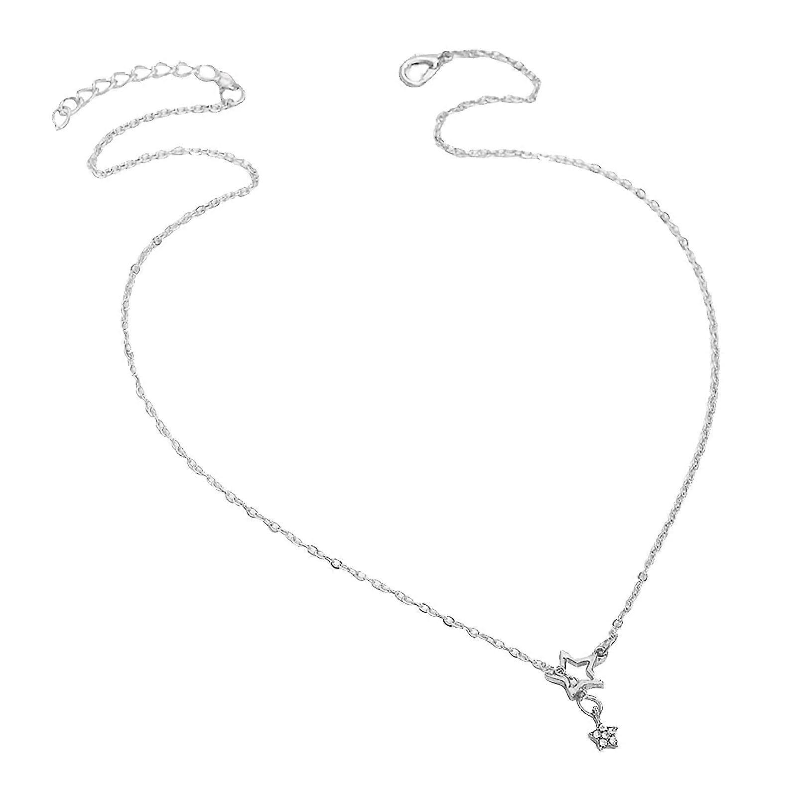 Yuehao Necklaces for Women, Simple Star Choker, Dainty Silver Pendant Chain, Cutout Charm Necklace Gift for Her (Silver, One Size)