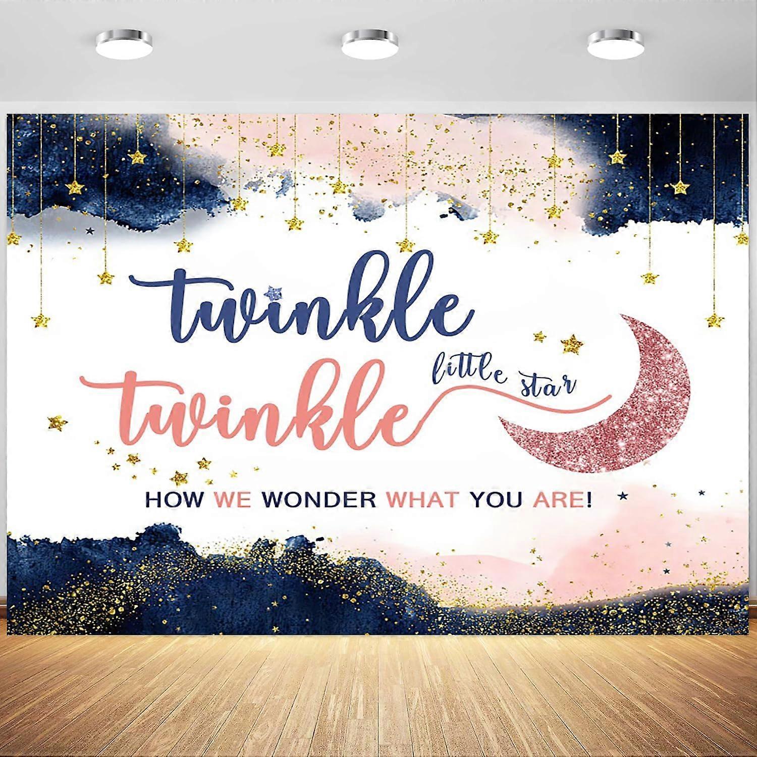 Twinkle Twinkle Little Star Backdrop Navy Blue Pink Moon Stars, Compatible with Gender Reveal Party Decorations & Photo Booth Props