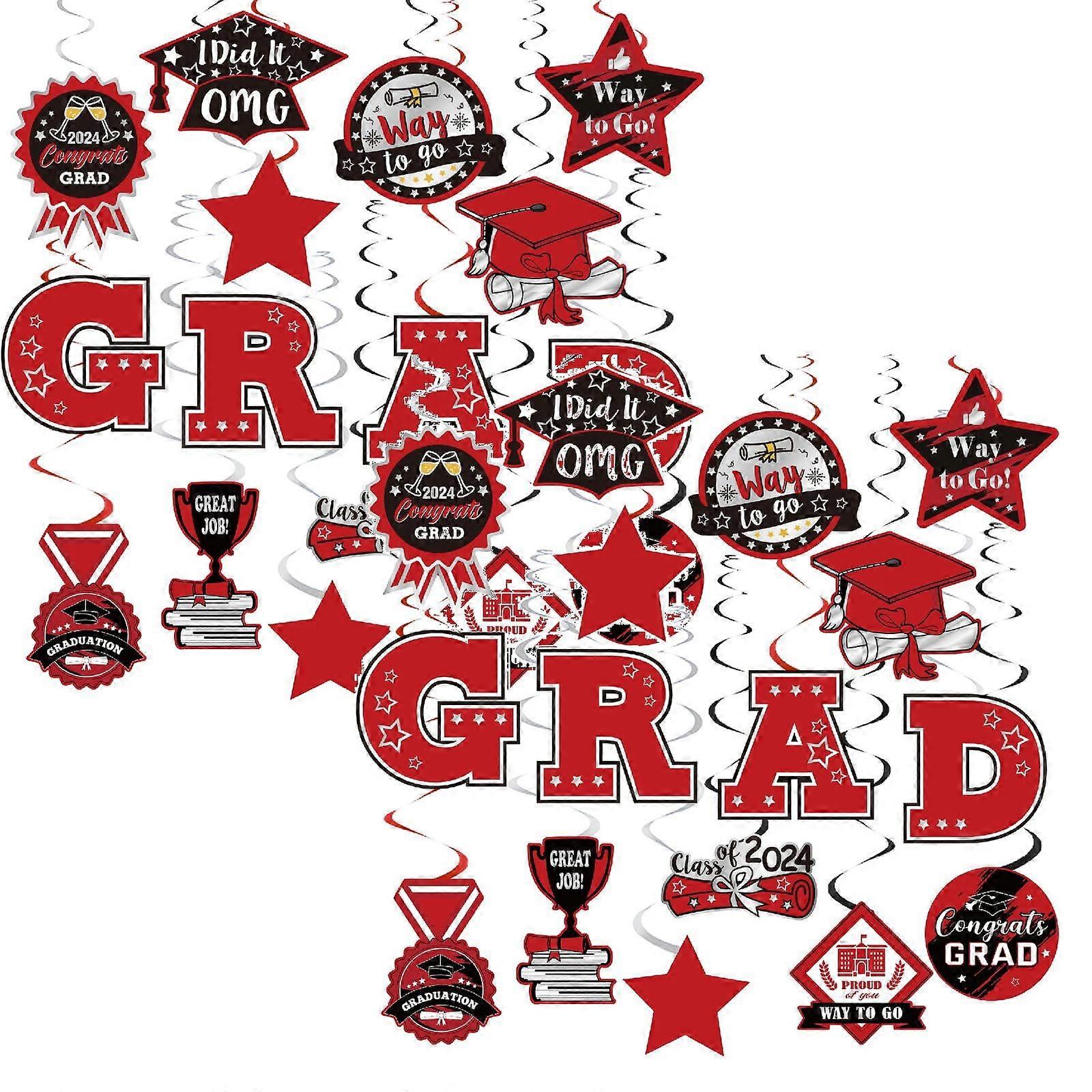 Xubond Blue Graduation Party Decorations - We Are Proud Of You Banners, Congratulations Graduates Swirls, Red College Decoration Supplies Flags