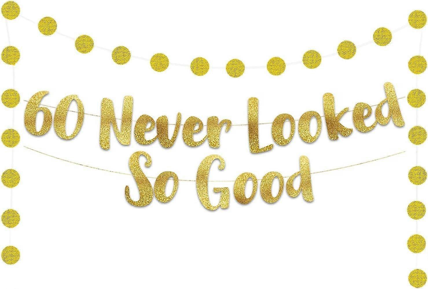 60 Never Looked So Good Banner and 2m Paper Circle Dots Hanging Garland Kit Paper Banner Bunting for Funny Birthday Party Hanging String Flag