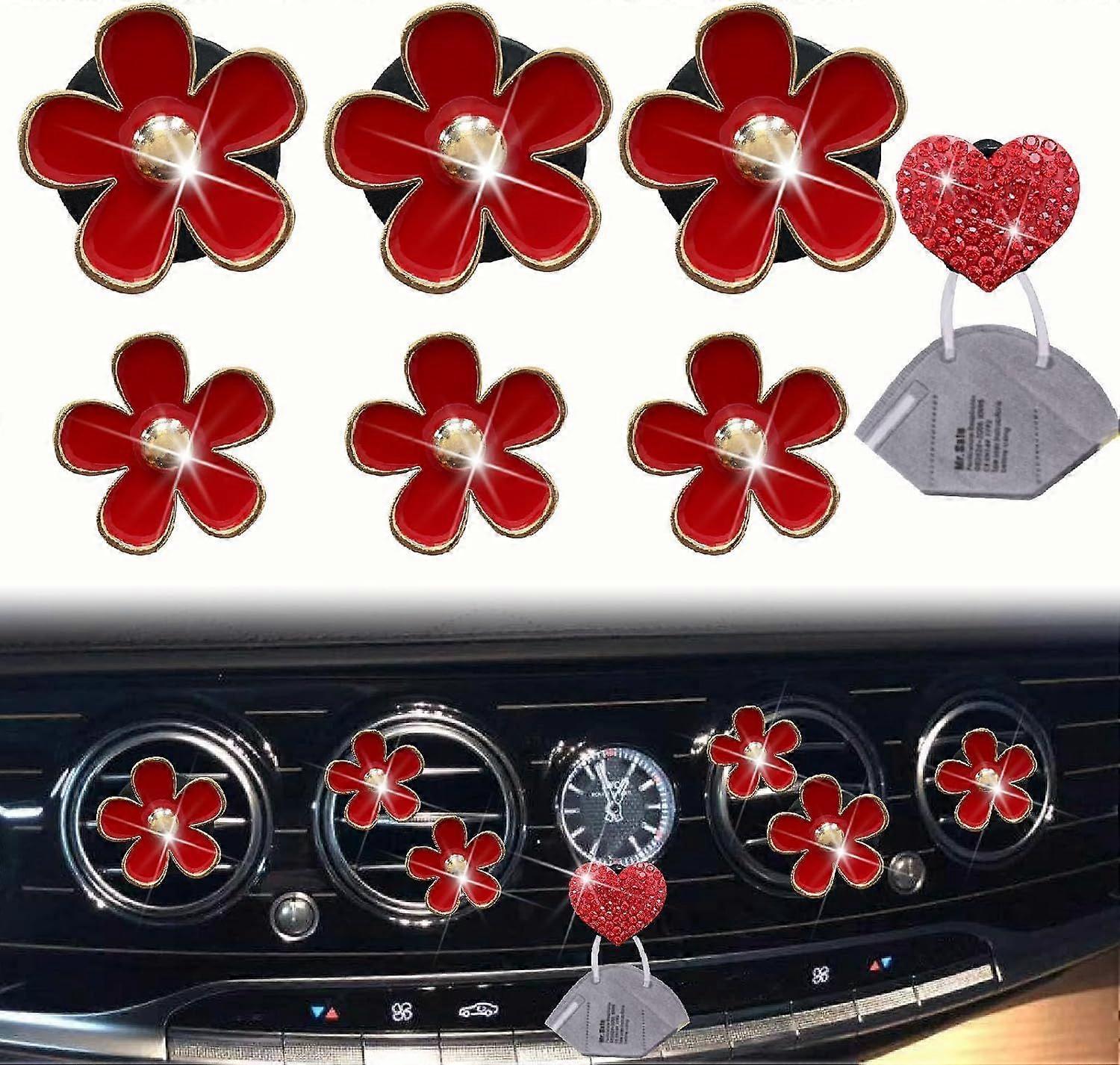 6 Pcs Flowers Air Vent Clips Red Daisy Car Air Freshener Vent Clips Cute Fower Accessories for Women Refillable Diffuser Car Decoration + Red Heart Ma
