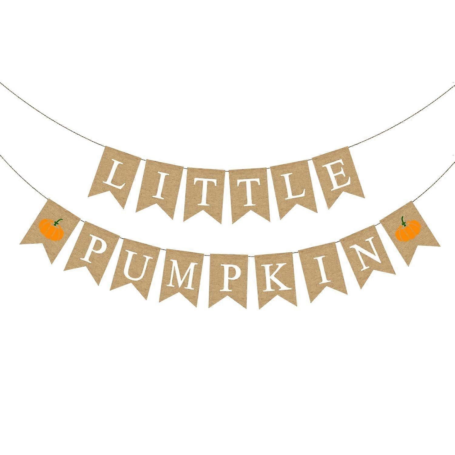 Burlap Little Pumpkin Banner Autumn Baby Shower Supplies Autumn Happy Fall Holiday Hanging Banner Birthday Party Decoration Supplies Garland Backdrop