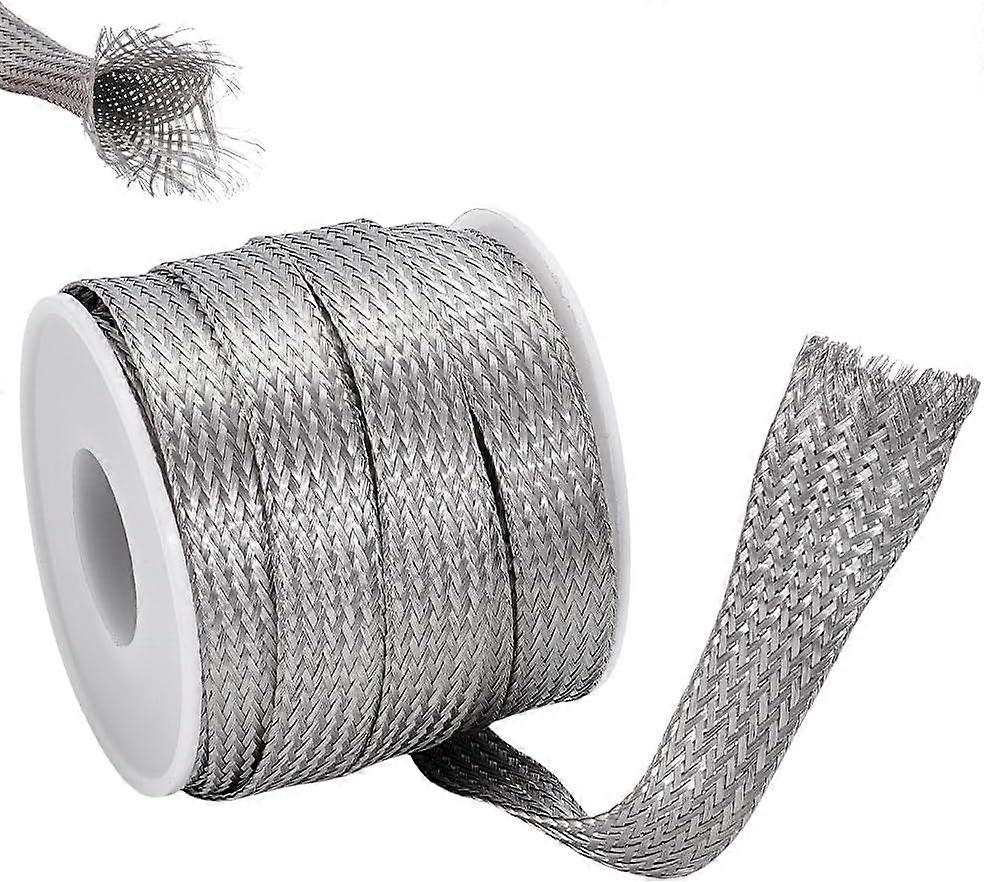 UNICRAFTALE 15mm Wide Braided Sleeving Braid Stainless Steel Cable Wire Shielding Sleeve Ground Straps Protection Metal Mesh Flexible Expandable Scala
