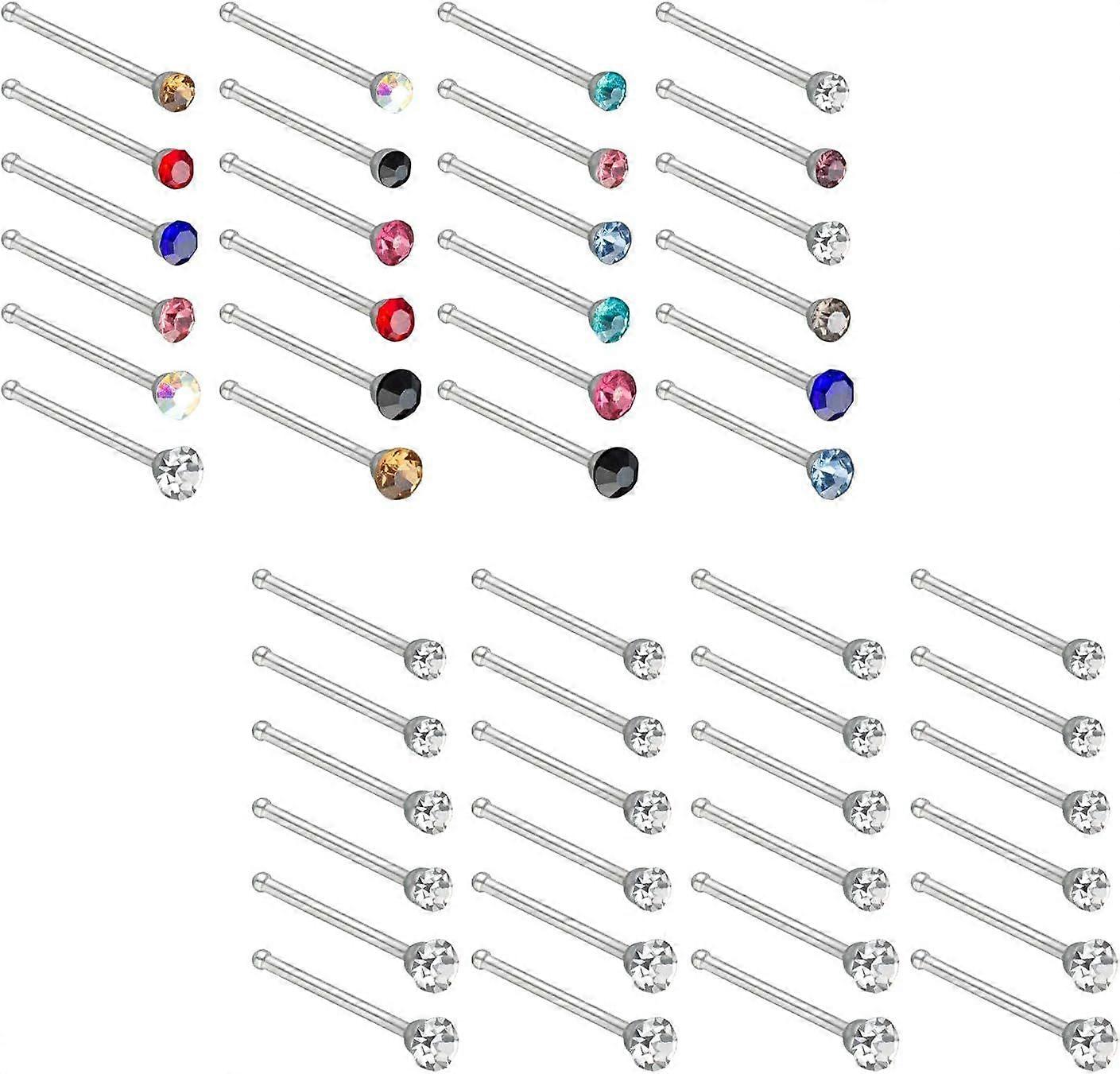 120 Pack Nose Studs Stainless Steel Screw 20G Nose Bone Ball End Nose Bars Straight Nose Rings Piercing Pin Crystal Zirconia Body Jewelry Diameter 15mm 2mm 25mm Set of 2 Gift Package for Women Girl Product Description 120 Pack Nose Studs Stainless Steel Screw 20G Nose Bone Ball End Nose Bars Straight Nose Rings Piercing Pin Crystal Body Jewelry Gift for Women Girl GIFT PACKAGE Diamond Nose Nails with Bright Colors It is a good gift for your family, lover, friends women, girls as Birthday Mother's Day, Thanksgiving Day, Christmas. STAINLESS STEEL Stainless steel nose piercing studs, high polished smooth surface, high resistance to rust and corrosion. DIFFERENT VARIETIES OF COLOURS Nose pin bone studs has many colors, such as green, pink, purple, black, orange, clear etc 3 SIZES OF NOSE RINGS Straight bar shapes nose ring, Crystal diameter: 2mm; bar length: 9mm; 3 sizes: 1.5mm(20pcs white+20pcs colorful/ 2mm(20pcs white+20pcs colorful)/ 2.5mm(20pcs white+20pcs colorful); Crystal diameter: 2mm, 3 avaible sizes for decorating your nose. Gauge: 20G =0.8mm 60 Pack Nose Studs Stainless Steel Screw 20G Nose Rings Zirconia Piercing Pin 60 Pack Nose Studs Stainless Steel Screw 20G Nose Rings Zirconia Piercing Pin 120 Pack Nose Studs Stainless Steel Screw 20G Nose Bone Ball End Nose Bars 60 Pack Nose Studs Stainless Steel Screw 20G Nose Rings Zirconia Piercing Pin Add To Basket Add To Basket Add To Basket Customer Reviews 4.2 out of 5 stars 168 4.4 out of 5 stars 1,043 4.2 out of 5 stars 103 4.4 out of 5 stars 115 Price no data 5.69 5 . 69 5.59 5 . 59 4.79 4 . 79 Quantity 60 Pack 60 Pack 120 Pack 60 Pack Color Silver Multicolors Multicolors Multicolors Diameter 2mm 2mm 1.5mm+2mm+2.5mm/3 sizes 2mm Material Stainless Steel Stainless Steel Stainless Steel Stainless Steel