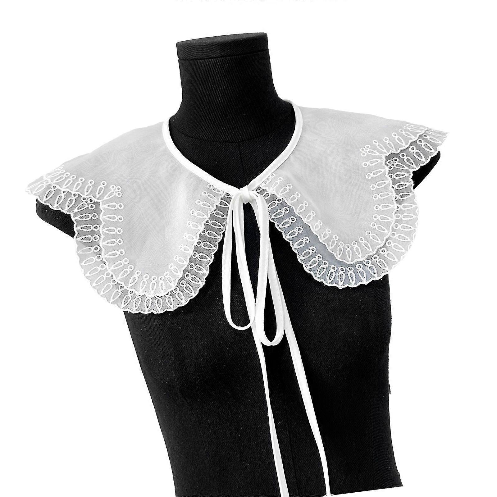 Elegant Laceup Tied Collar Neck Accessory Embroidery Trim Decorative False Collar For Office Outfit And Special Event White