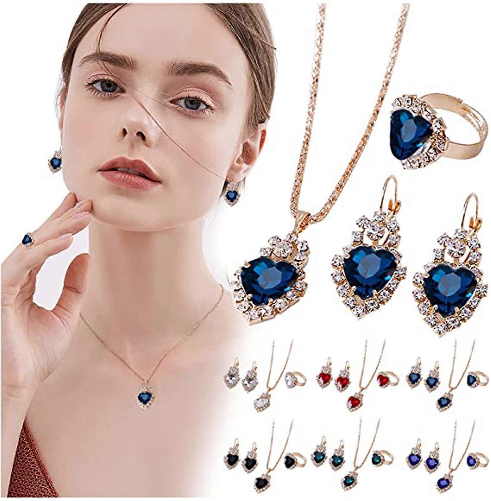 Jacenvly 2024 Heart Necklace Pendant Earrings Set Jewelry for Women Girls, Valentine's Day Gift (Compatible with)