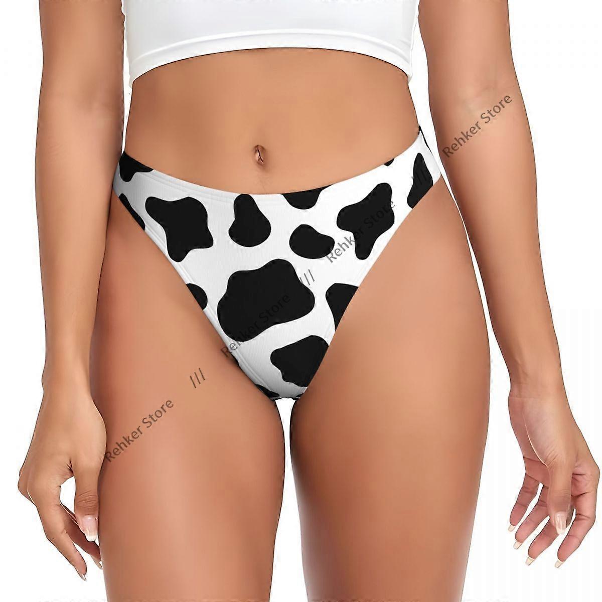 Thongs For Women V Waist G-String Panties Black And White Cow Pattern Underwear Breathable Underpants