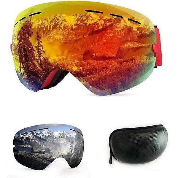 OTG Ski Goggles, Ski Mask Anti-fog and Windproof Goggles for Men, Women and Youth, UV 400 Protection, Removable Spherical Glasses Red YC