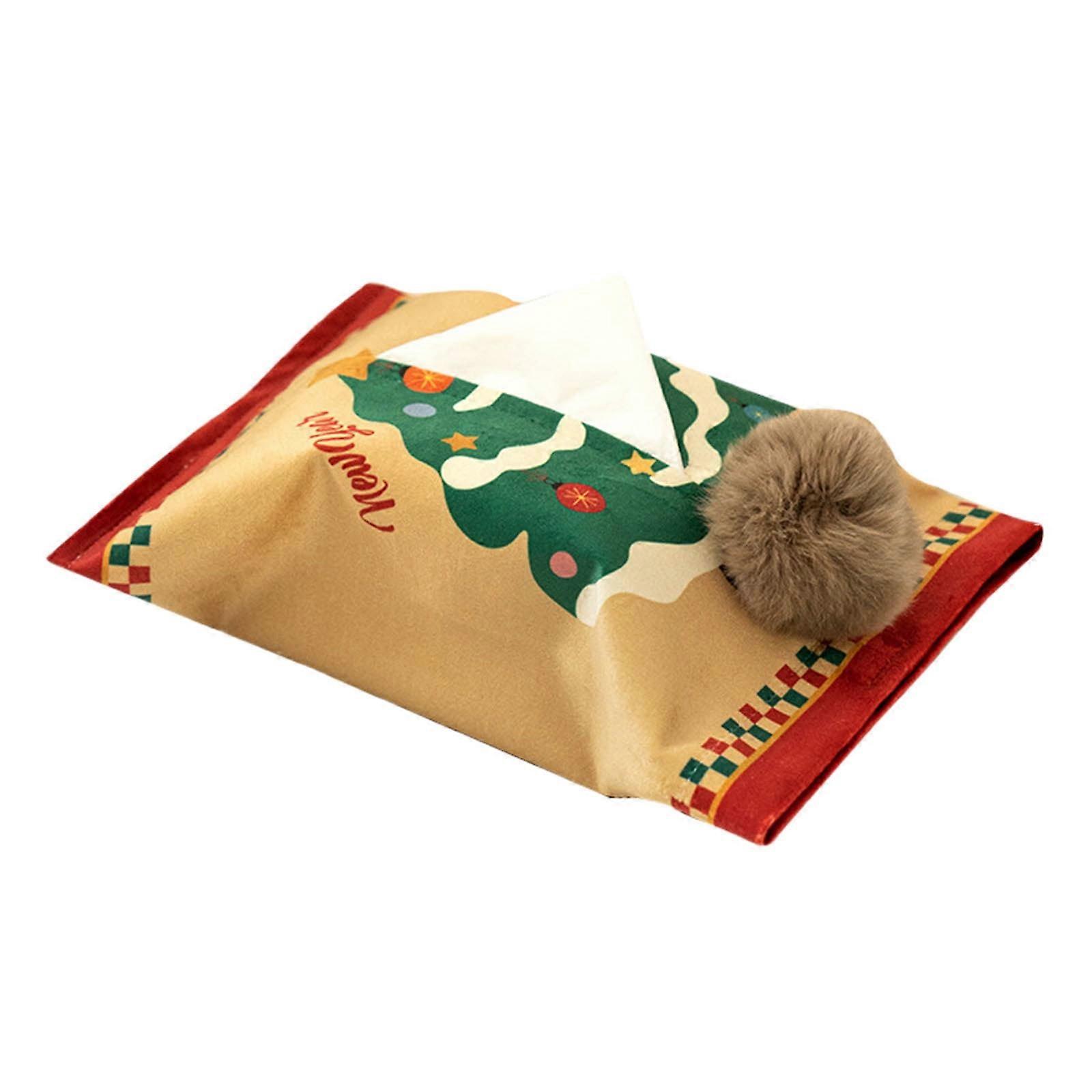 Christmas Tissue Box Cover with Velvet Ball - Compatible with Xmas Decor, New Year's Table & Living Room, Upscale Home & Car Use