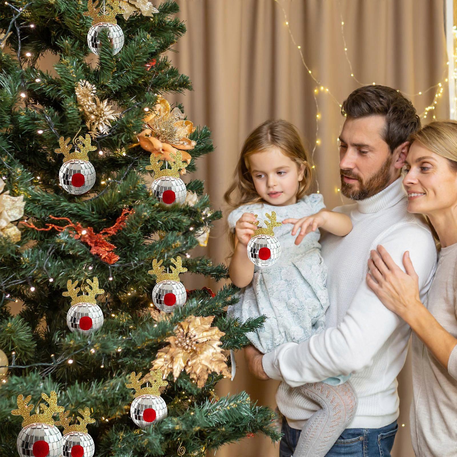 Material: PVC Single Christmas ball size: 7 * 5 * 5cm Weight of a single Christmas ball: approximately 20g Product packaging size: 30 * 20 * 7cm Packaging weight: 320g Packaging method: OPP Package includes: 16pcs * Christmas balls 【Package Includes】You will receive 16pcs Christmas colorful disco balls. There are ample quantities to meet your home and party decor needs. The size is 2 inch. These groovy party decorations are mainly made of foam inside and covered with colorful sequins on the surface, which is lightweight and reliable for your use 【Creative Designs】different from ordinary Christmas ball ornaments, our disco ball ornaments are embellished with cute Santa hats/Deer antlers/bow tie at the top to form a whole; In this way, they can not only give you a reflective silver mirror effect, but also present a funny and lovely style 【Easy To Hang】This small disco ball decor has rope attached to it, so it's simple to install, convenient to hang where you want, like a Christmas tree, ceiling, light and more 【Where to Hang】 each small disco ball measures approx 2.7*2 inches, portable and proper to be a hanging decoration, which can be easily hung on Christmas trees, doors, walls, fireplaces, window, mantels, staircases, ceilings and other places that need decoration 【Wide Applications】 these silver Christmas tree ornaments could be applied for a variety of occasions, such as Christmas parties, disco parties, birthday parties, family gatherings, retro theme parties and so on, which will create a strong festive atmosphere for you and your guests