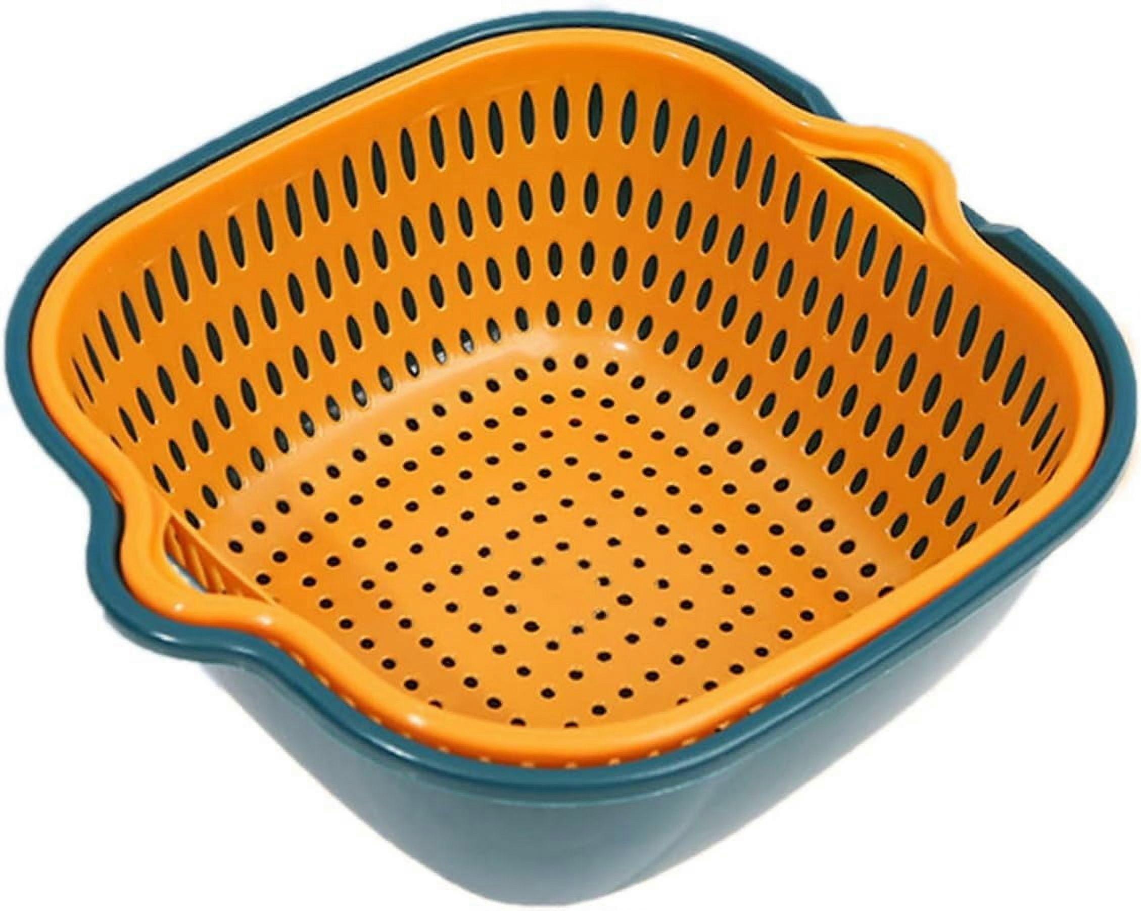 Multi-Layer Vegetable Washing Basket, Kitchen Strainer Colander Bowl with Hanging Hole, Drain Bowls for Fruits & Veggies, Small Blue & Yellow