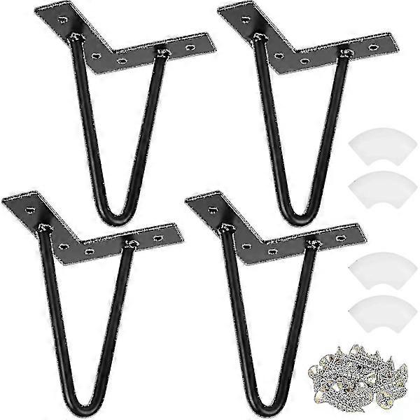 Super Quality AValda pin legs made of high quality iron which is perfect for raising the height of your table, the load capacity can reach 100200kg, it is strong and durable. Easy to install Comes with 4 hairpin table legs screws, the removable plastic pad protects your floor from scratches. Superior workmanship The delicate surface of the metal furniture legs is treated with a galvanized paint that is sturdy, corrosion and rust resistant, making it perfect for keeping furniture in place for a long time. On the underside of the furniture legs, there is a rubber pad that protects the floor from furniture wear. Compatible style The simple, modern style is easy to match and perfectly matches any home and furniture. Versatile base legs Very suitable for bedside tables, coffee tables, chairs, dressing tables, desks, sofas and wardrobes.