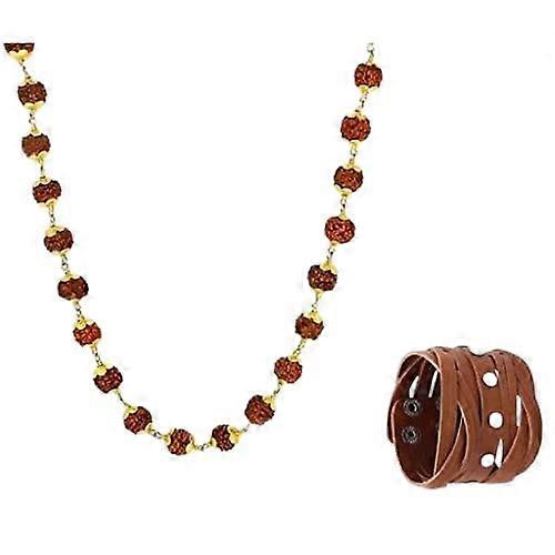 Juneja Enterprises Trendy Rudraksha Chain With Brown Leather Bracelet For Mens/Boys(Set Of 2)