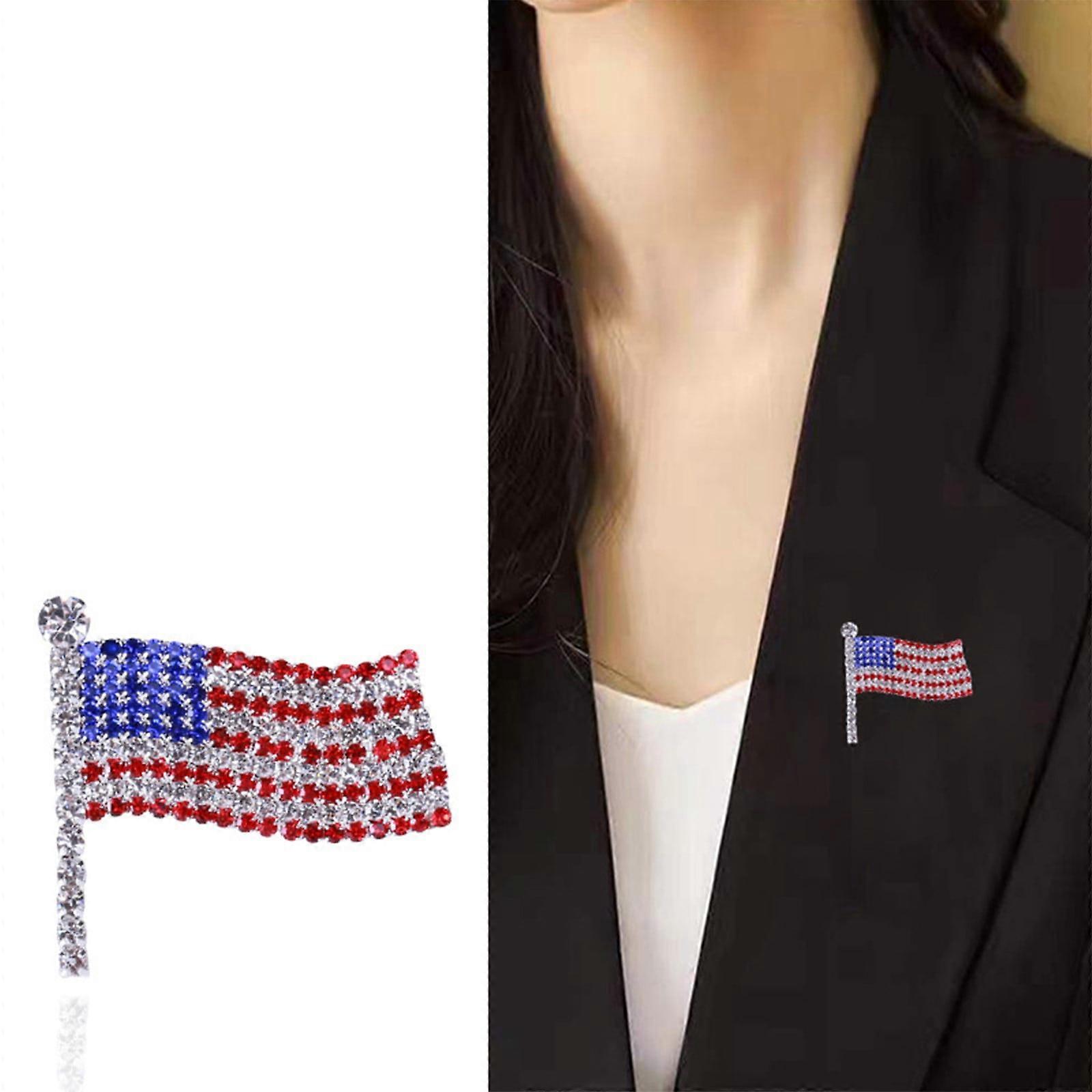 Qdahuk Jewelry Enamel Crystal Waving USA American Flag Patriotic Corsage Brooch Pin For Clothes Scarf Bag Hat Sliver