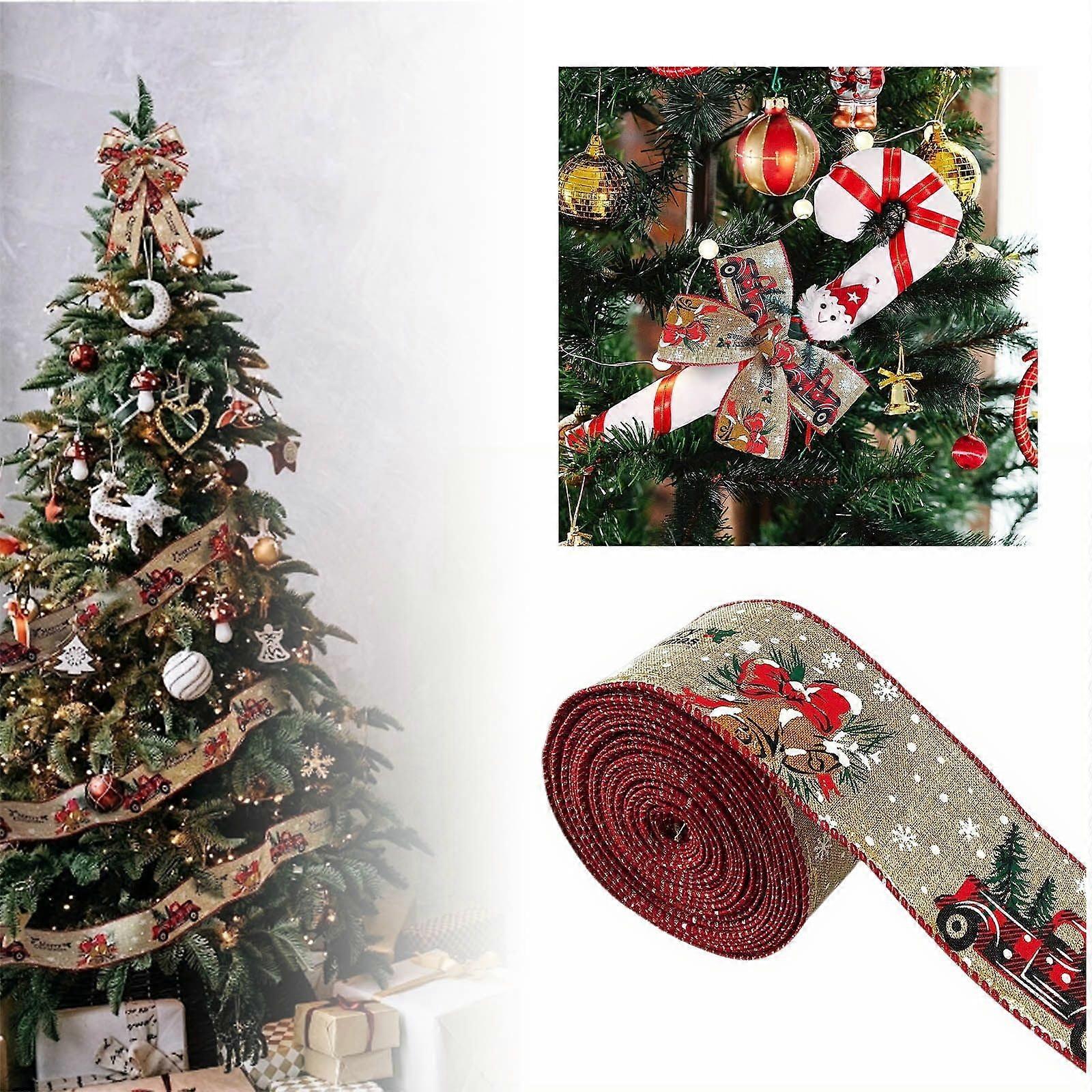 1 Roll Of Christmas Decoration Supplies Car Printing Ribbon Dress Up Linen Ribbon