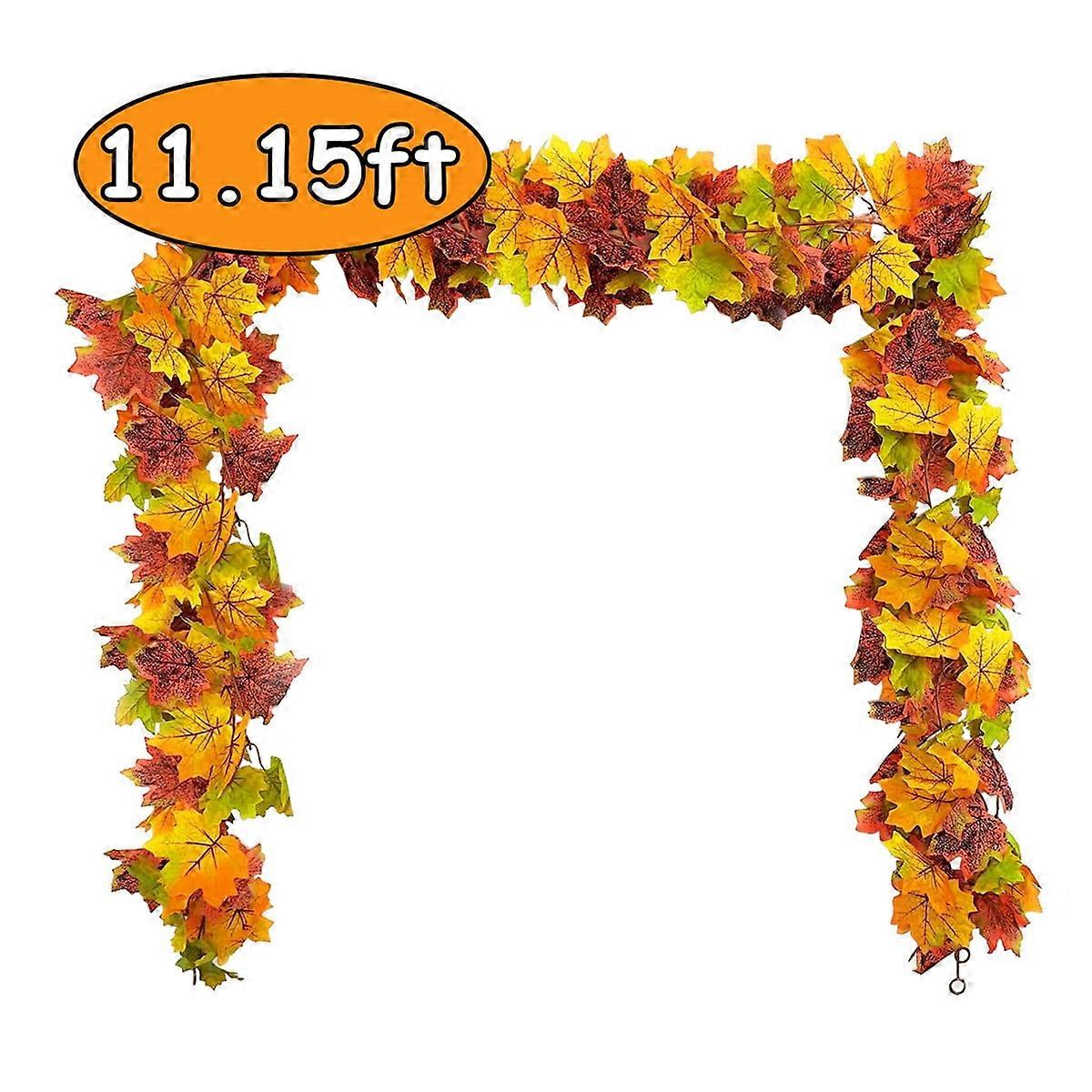 Fall Garland Maple Leaf, 5.56ft/Piece, Artificial Autumn Vine Garland, Thanksgiving & Christmas Decor for Home, Wedding, Fireplace, 2-Pack
