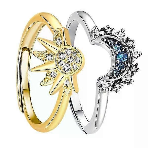 Sun and Moon Ring Set, Valentine's Day Gift Adjustable Celestial Jewelry Matching Rings as Love Ring Gifts YC