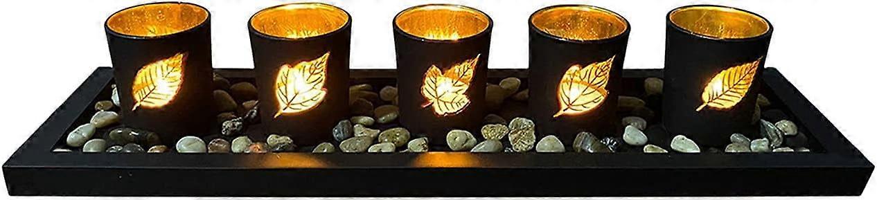 Set of 4 Candle Holder Candle Holder Table Centerpiece Wedding Bathroom Decor Home The description: Candle holder made of natural wood, glass and pebbles, the unique appearance creates a romantic and elegant atmosphere. To be used as a decorative object alone or with candles. Suitable for cup candles as well as votive candles. Great for decoration of pub, bar, home, hotel, cafe. Perfect decorative ornament for wedding, party and other special occasions. specification: Material: wood + glass + pebbles Black color Size: 34 x 12 x 7.5cm / 13.39 x 4.72 x 2.95 inch The package includes: 1 Piece Candle Holder Set Note: 1. Due to the light and screen difference, the item's color may be slightly different from the pictures. 2. Please allow 1-3mm differences due to manual measurement. [Atmosphere Vibe Tealight Candle Holder] - Candle holder made of natural wood, glass and pebbles, the unique appearance creates a romantic and elegant atmosphere. [Halloween Touch] - To be used as a decorative object alone or with candles. [Vintage Retro Tealight Votive Candle Holder] - Suitable for cup candles as well as votive candles. Material: wood + glass + pebbles [Widely Applying] - Great for decoration of pub, bar, home, hotel, cafe. Perfect decorative ornament for wedding, party and other special occasions.