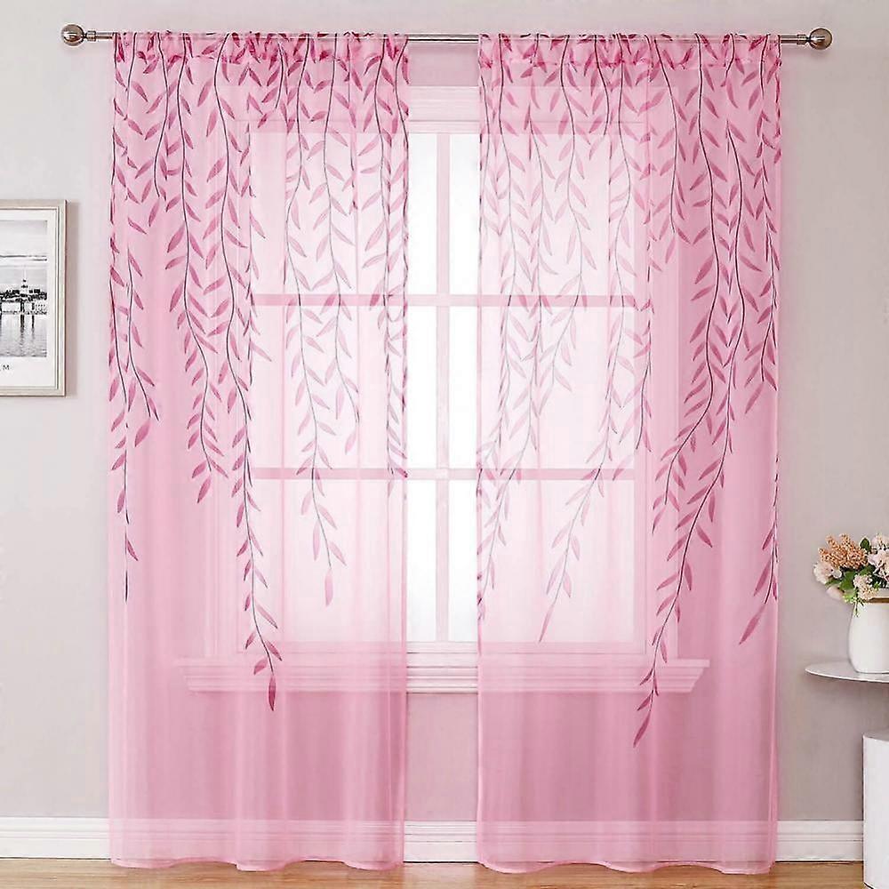 2Pcs Willow Window Curtain Voile Tulle Sheer Gauze Panels 82''L x 39"W Green Pink for Living Room Bedroom Balcony