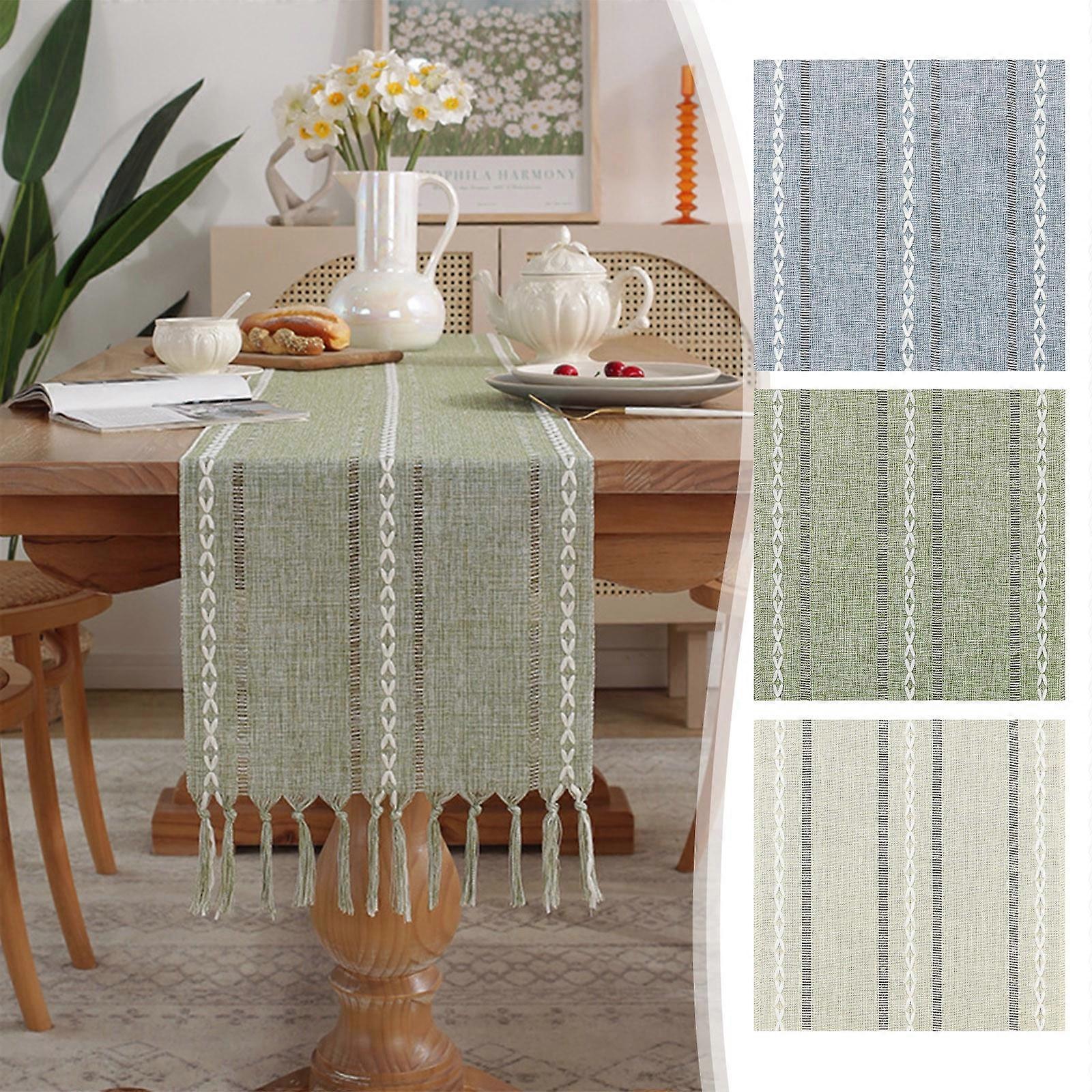 Jacenvly Halloween Table Runner, Cotton Linen, Hemstitched & Embroidered Stripe, Boho Home Decor, Outdoor/Indoor