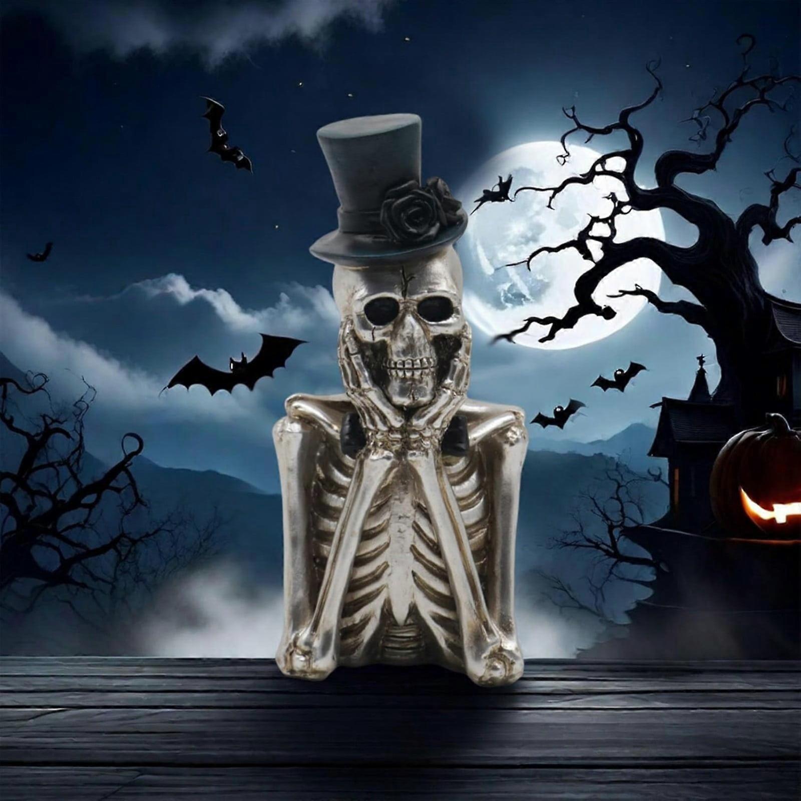 Yakbaofuo Halloween Skeleton Figurines, Cute Resin Statues Decor, Mini Ornaments Collectibles for Home Desk, Memorial, Compatible with Halloween