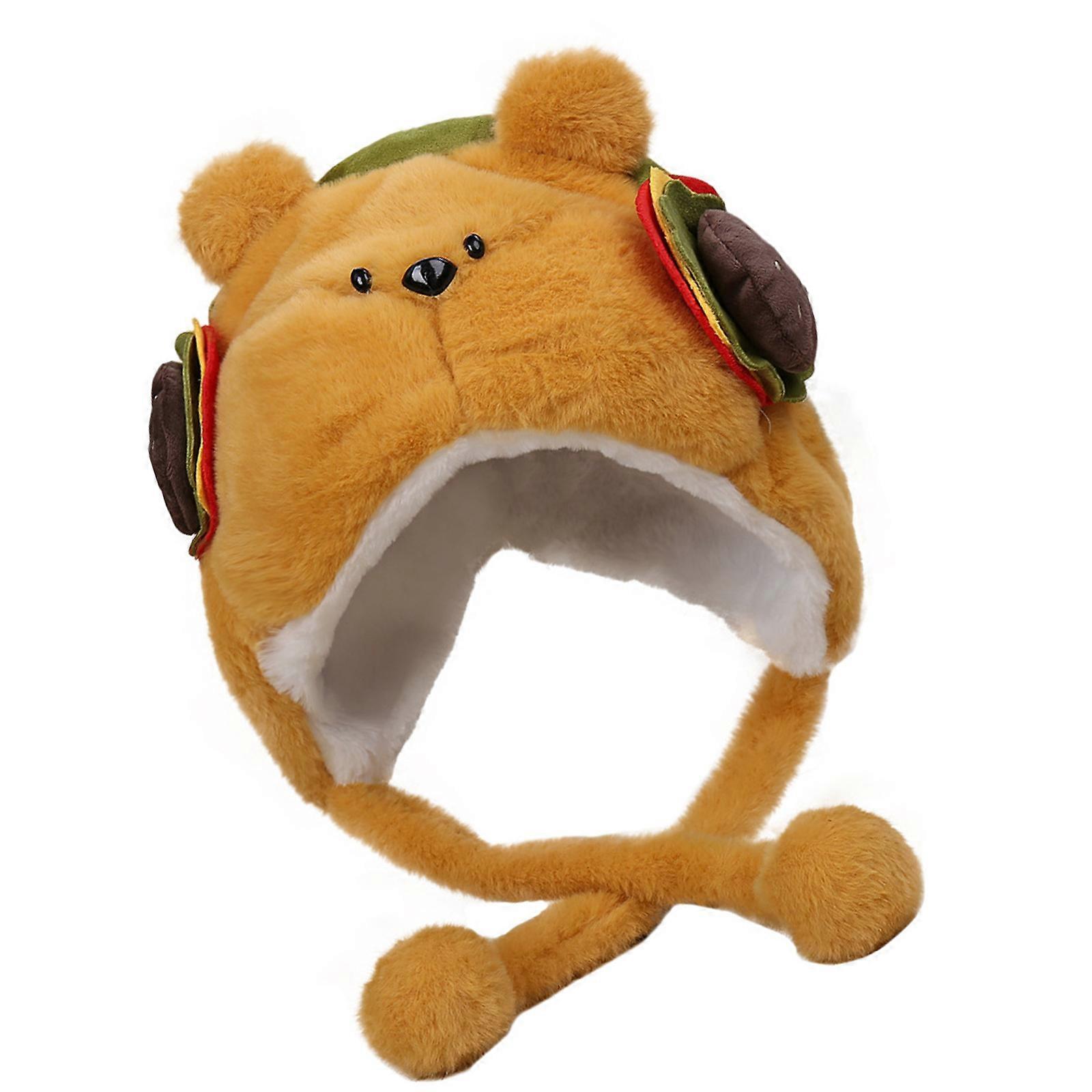 Soft Plush Brimless Hat With Lovely Hamburger Bear Design Furry Cartoon Ear Pullover Hat with Earflap For Cold Weather Yellow os