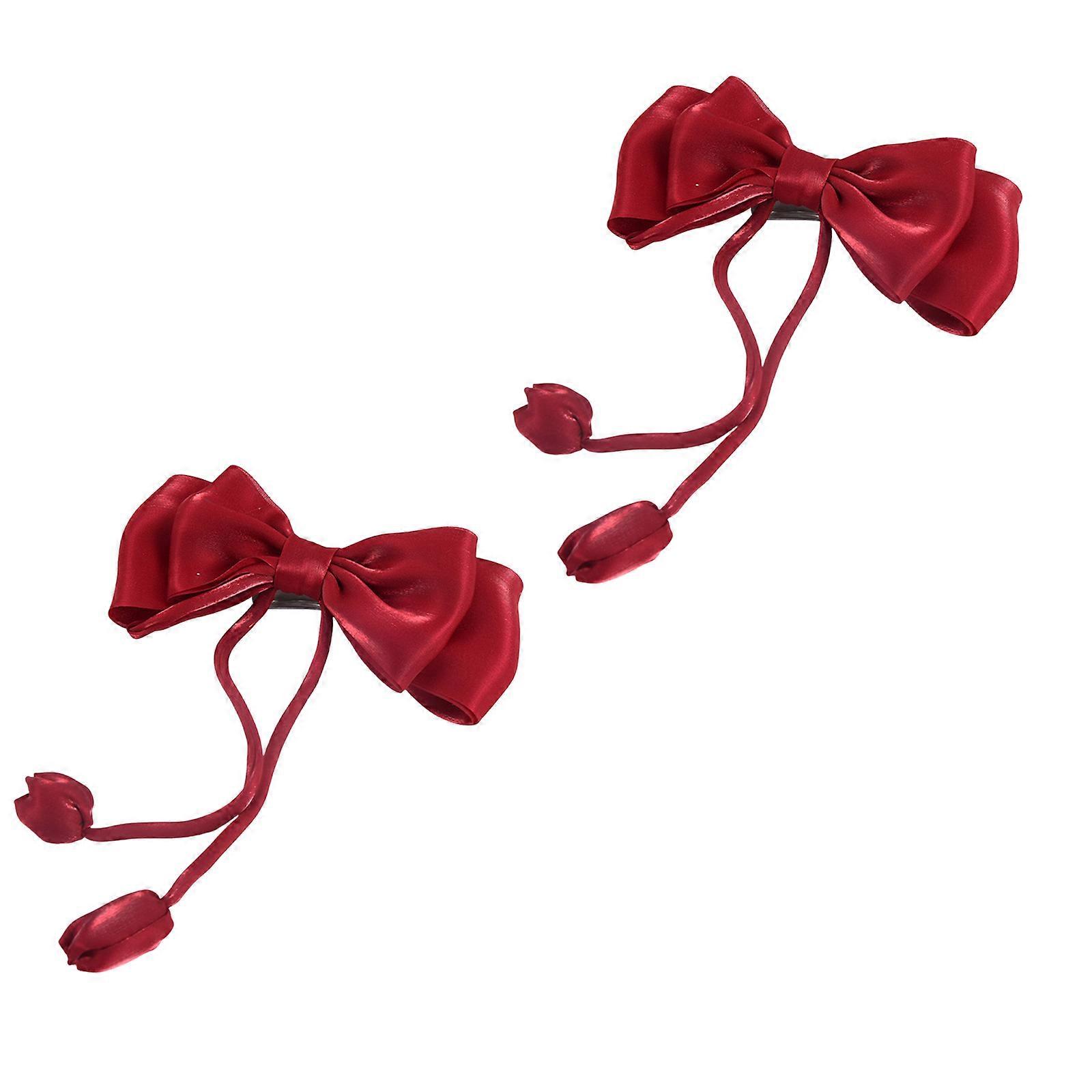 2 Piece Elegant Rose Bowknot Curtain Tiebacks Reusable Window Drapery Holdbacks Buckles Home Window Decors Accessories Burgundy
