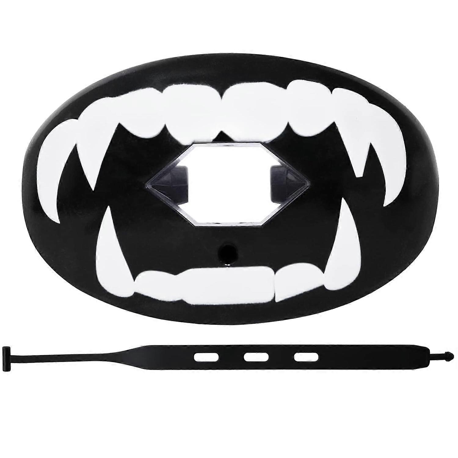 Mouth Guard with Strap, Compatible with Football & Sports, Protects Inner/Outer Mouth, Breathable Design for Youth & Adults, Black
