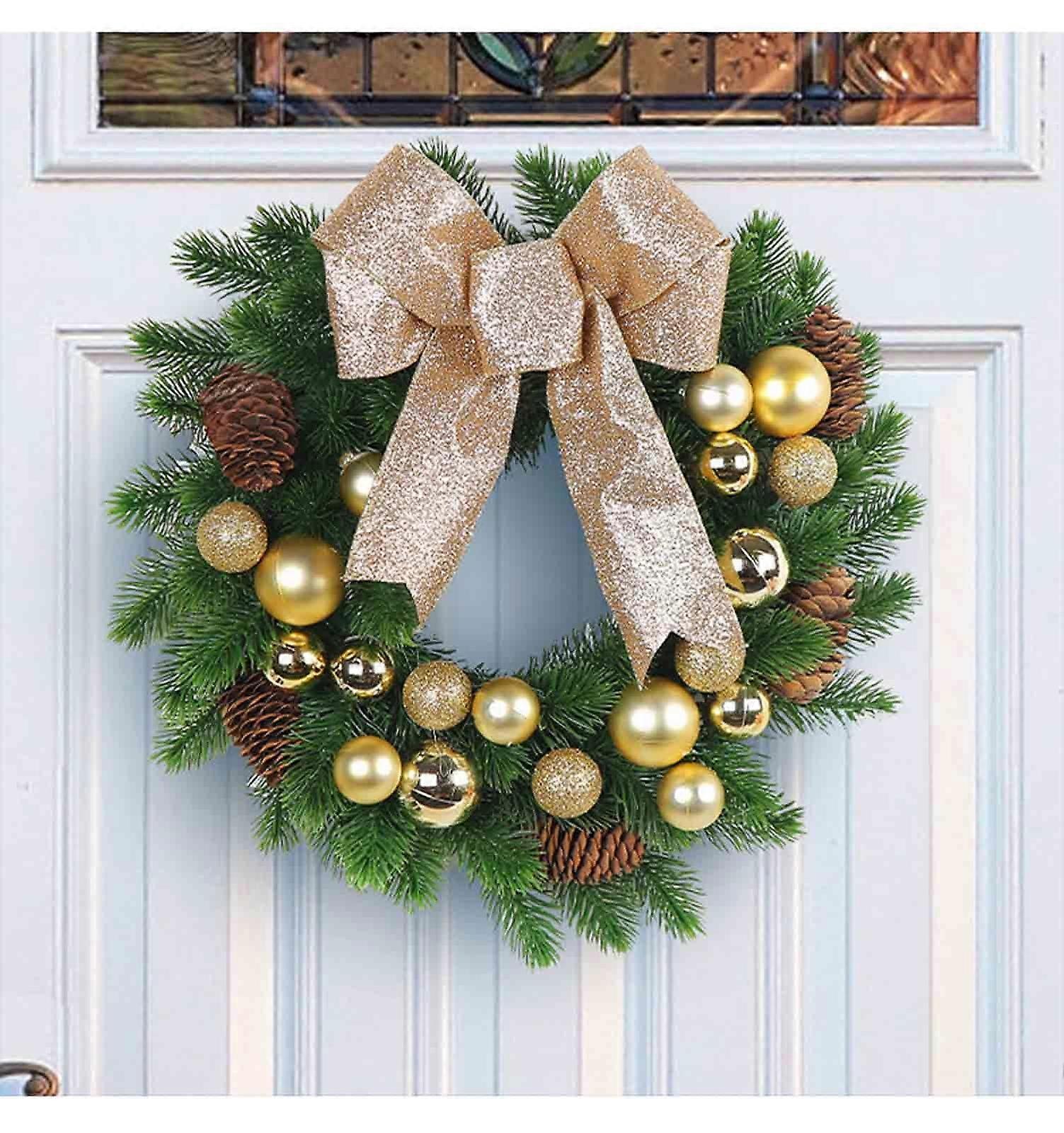 Jacenvly Christmas Decorations Clearance: Wreath, Garland, LED Warm Light, Large Bow, Compatible with Metal Trees