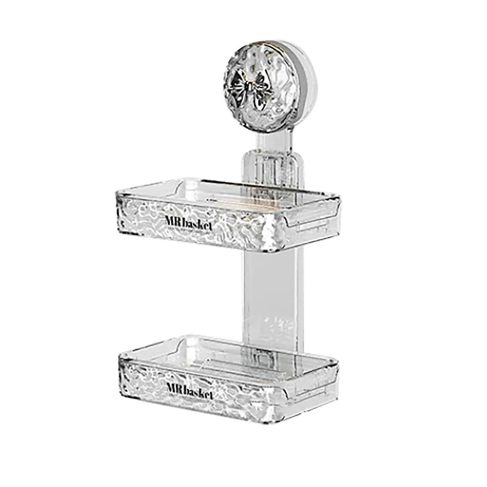 Poaug Bathroom Organizer, Wall Mounted Double Layer Suction Cup Soap Box with Drain, Luxury Storage Rack, Creative Clear Suction Cup Compatible with