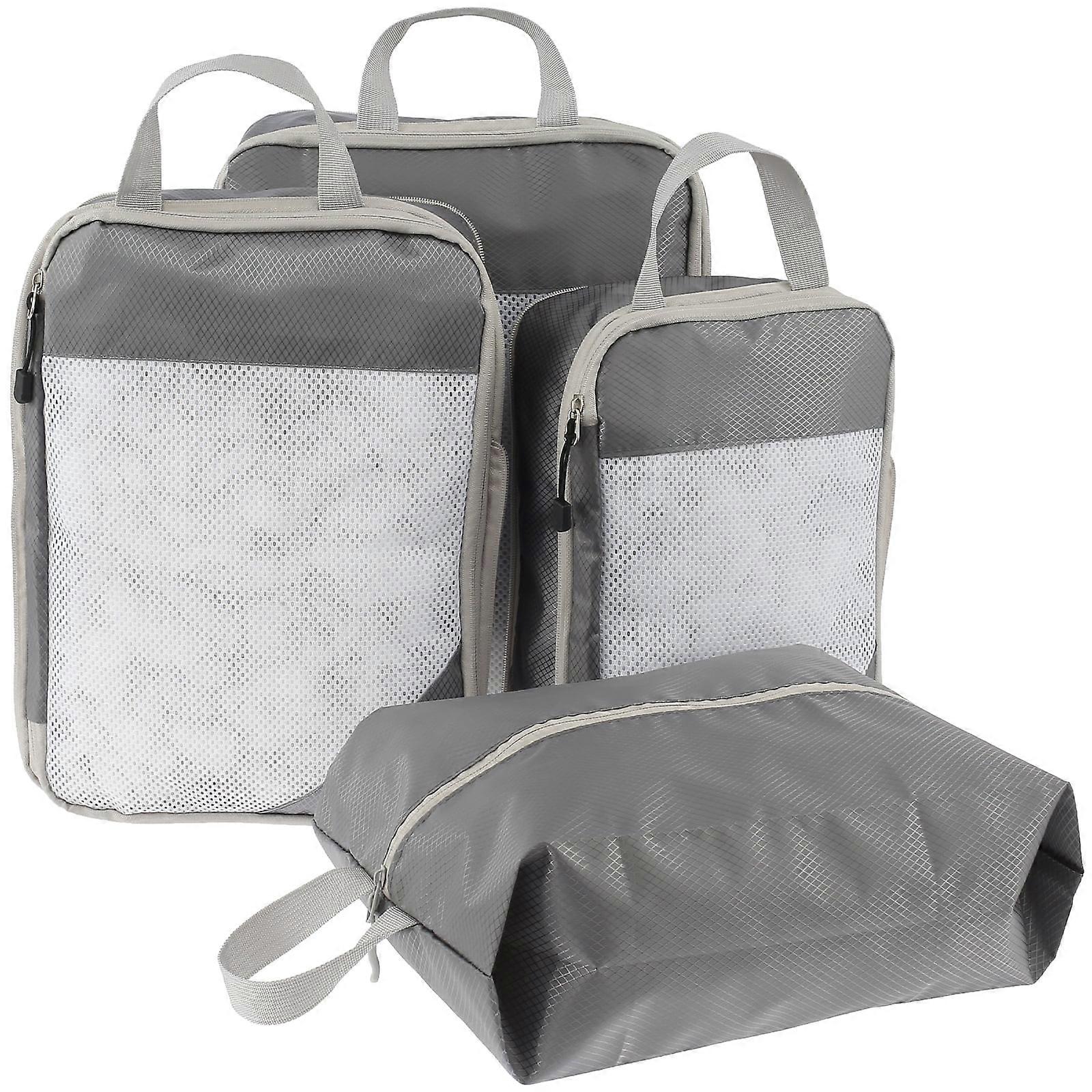FUYGRCJ 4Pcs Compression Packing Cubes Set with Mesh, Lightweight Luggage Organizers + Shoe Bag, Compatible with Most Suitcases