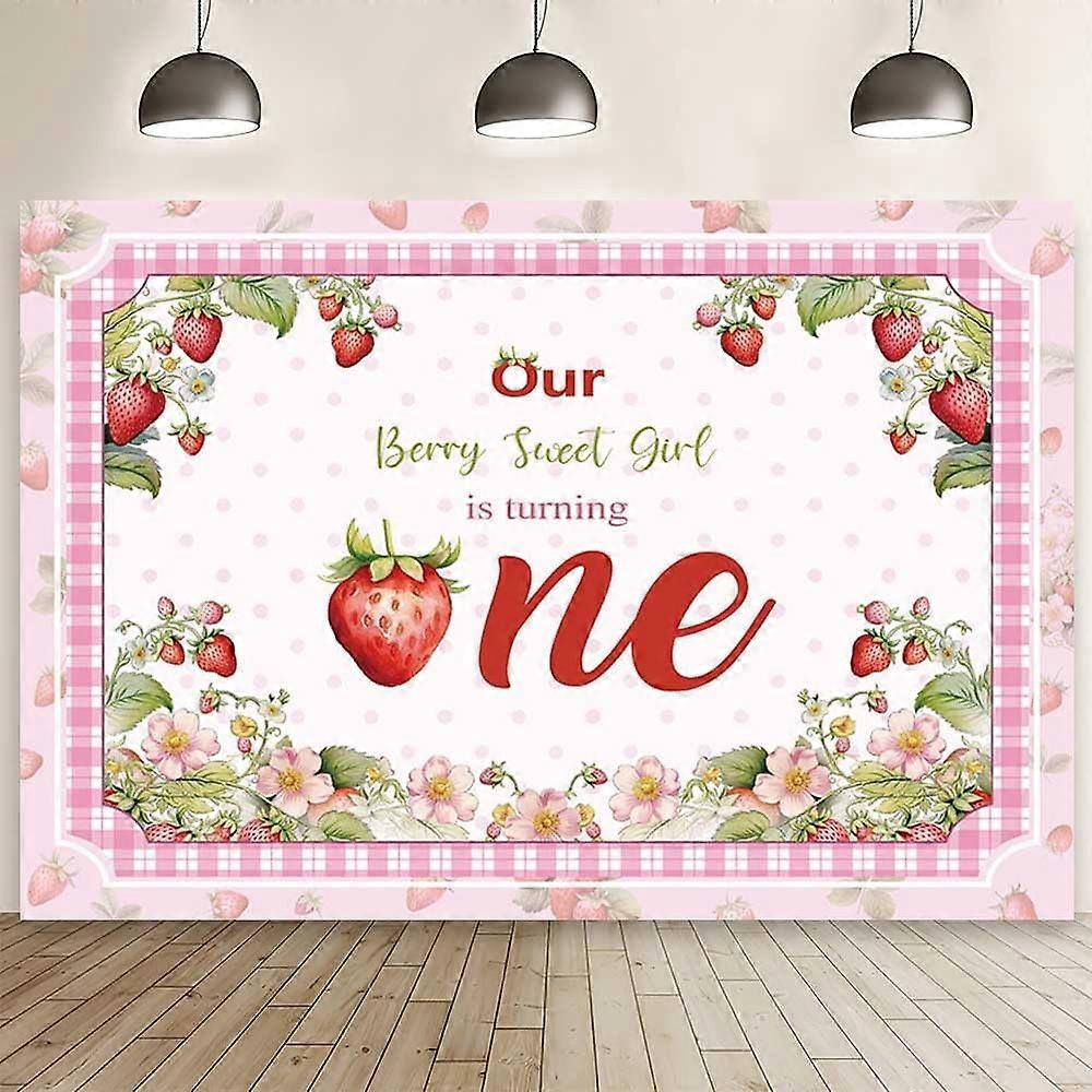 Custom 7x5ft Strawberry Girl 1st Birthday Backdrop, "Our Berry Sweet is Turning One" Pink Strawberry Theme, Compatible with Summer Fruits Party Decor