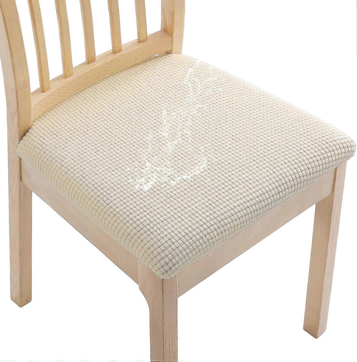 DEFNES Waterproof Seat Covers for Dining Room Chairs Set of 6, Stretch Jacquard Removable Washable Chair Seat Protector Cushion Slipcovers, Beige