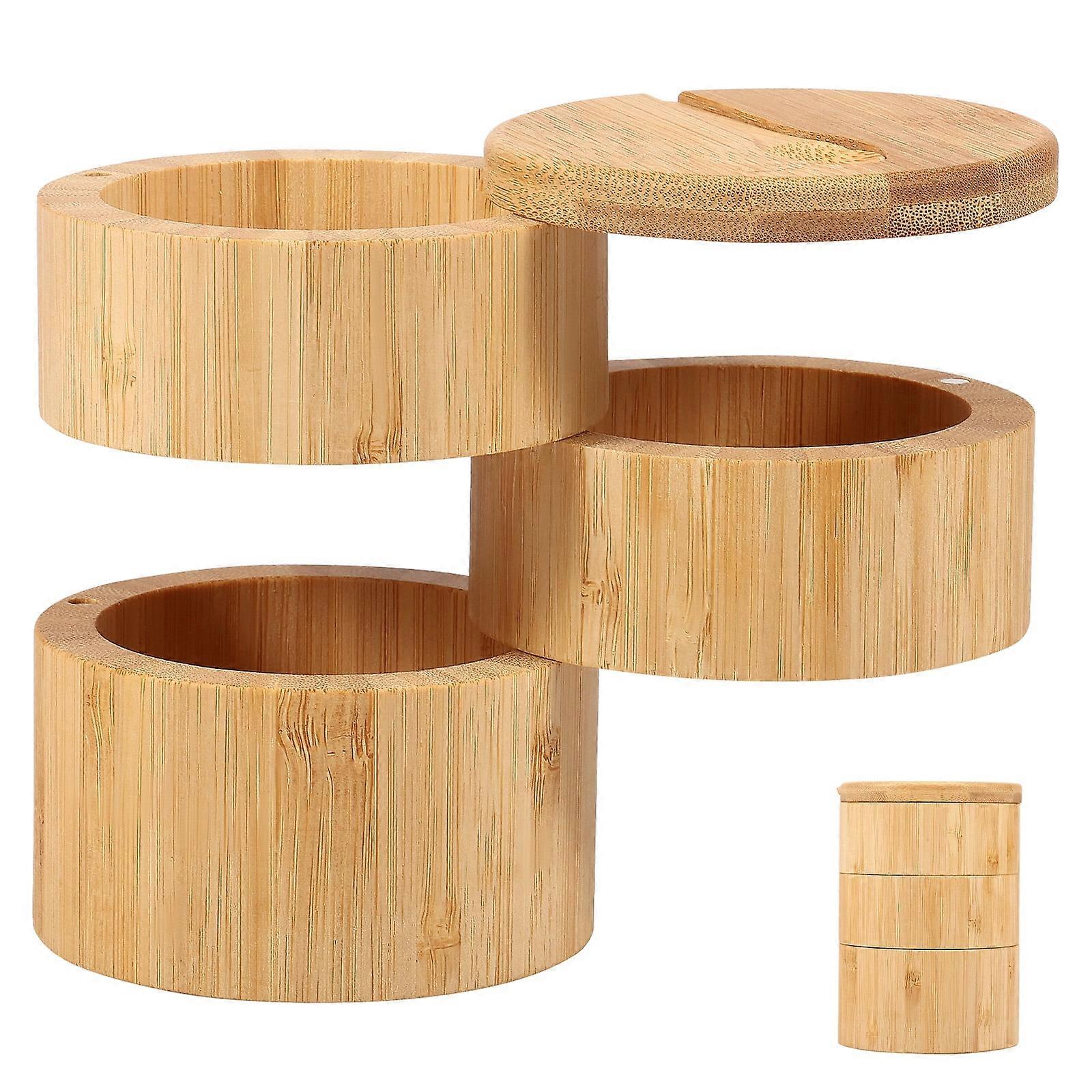 FUYGRCJ Salt Cellar with Magnetic Lid & Spoon, 3-Tier Bamboo Spice Box, Large Capacity for Salt, Coffee, Seasoning Storage