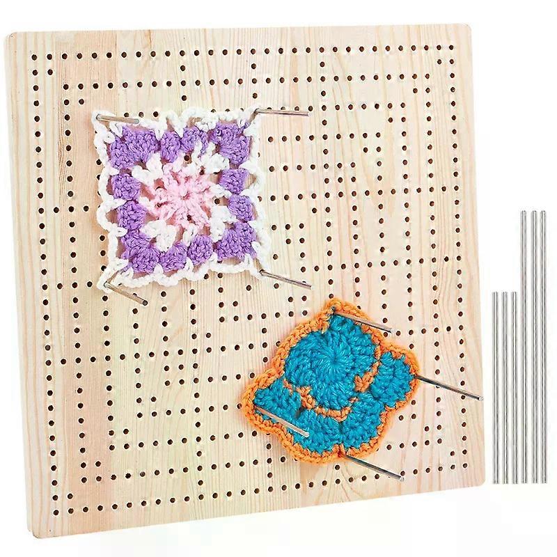 1 Set Rectangle Wood Crochet Blocking Board with Stainless Steel Rods Blanched Almond Knitting Tools