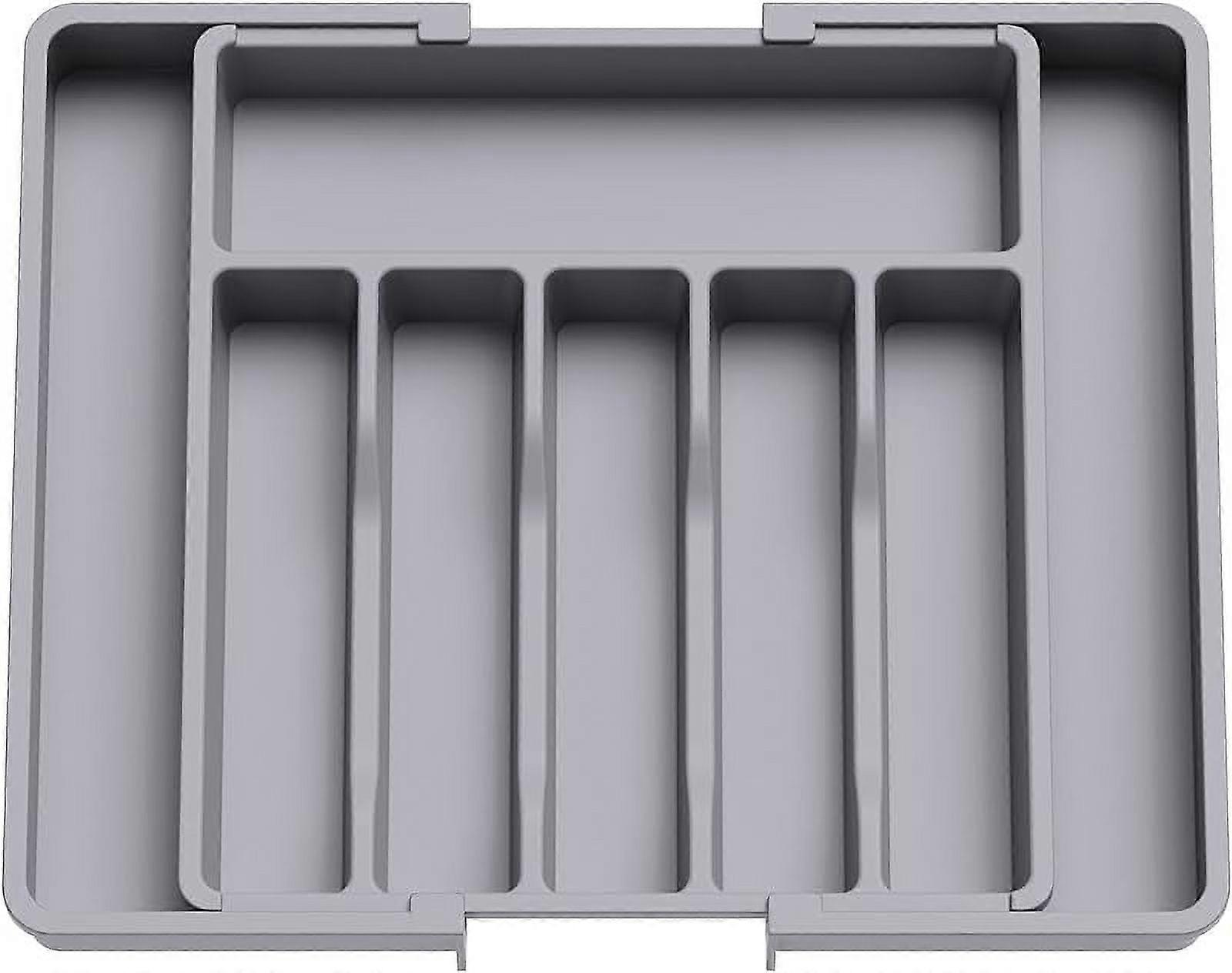 Silverware Drawer Organizer, Extendable Kitchen Tableware Tray, Non-Woven Cutlery Rack, Adjustable for Spoons Forks Knives, Large Black