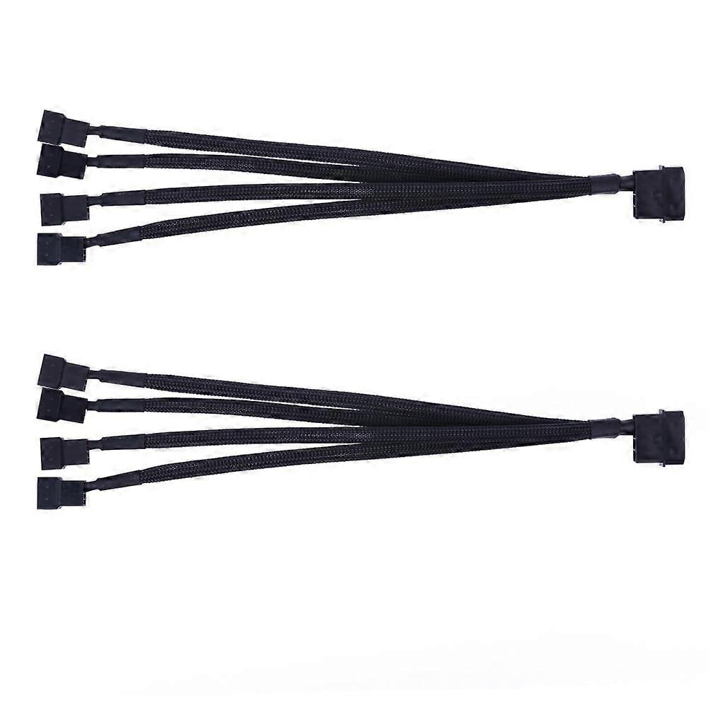 Black Sleeved 4pin IDE Molex to 4-Port 3Pin/4Pin Cooler Cooling Fan Splitter Power Cable _x005f_x000D_ _x005f_x000D_ Description: _x005f_x000D_ This cable can Turn 4Pin IDE to 4-Port 3Pin/4Pin Power Supply Plug for PC Fan, It is usually used for PC PSU lacking of 3Pin/4Pin Plug. _x005f_x000D_ _x005f_x000D_ Features: _x005f_x000D_ Name: Black Sleeved 4pin IDE Molex to 4-Port 3Pin/4Pin Cooler Cooling Fan Splitter Power Cable _x005f_x000D_ IDE : 2pin Male _x005f_x000D_ 4Pin: 2pin Male _x005f_x000D_ Material: Black Sleeved, Black Environmental connector,  22AWG wire _x005f_x000D_ Output voltage: 12V _x005f_x000D_ Length: Approx. 27cm _x005f_x000D_ _x005f_x000D_ Note:  _x005f_x000D_ It is only a Fan Splitter Power Cable. And it doesn't support PWM fan to adjust speed. _x005f_x000D_ _x005f_x000D_ Included: _x005f_x000D_ 2 x Power Cable Name: Black Sleeved 4pin IDE Molex to 4-Port 3Pin/4Pin Cooler Cooling Fan Splitter Power Cable IDE : 2pin Male 4Pin: 2pin Male Material: Black Sleeved, Black Environmental connector, 22AWG wire Output voltage: 12V