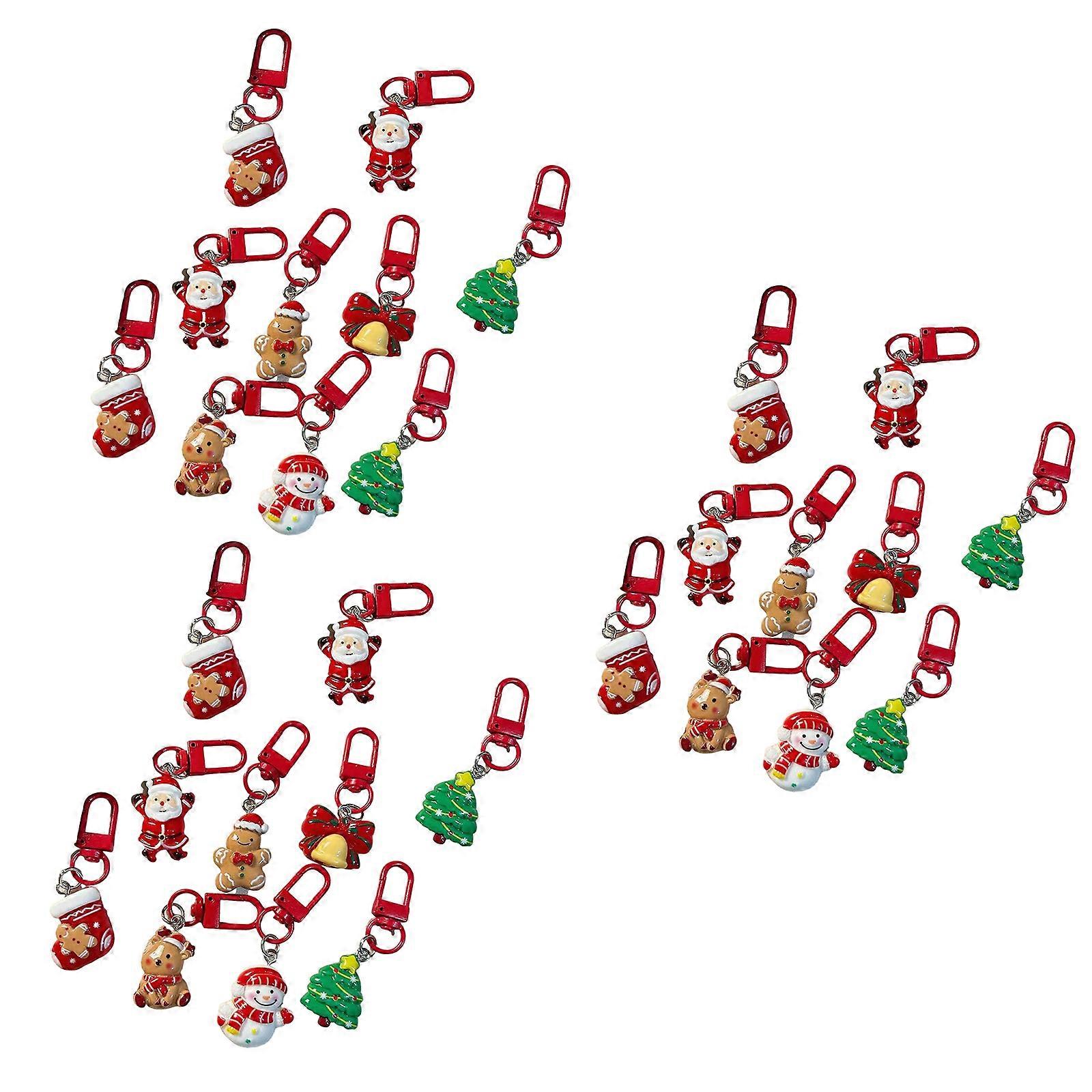 Festival Cartoon Christmas Keychain Set Holiday Party Favor Resin Keyring Gift Stocking Stuffer Accessories Multicolor
