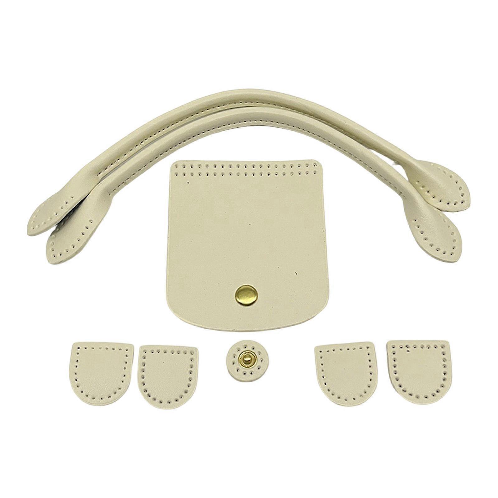 DIY PU Leather Bag Knitting Set Bag Handles Snap Button Flap Cover Leather Bag Making Accessories for Shoulder Bags White