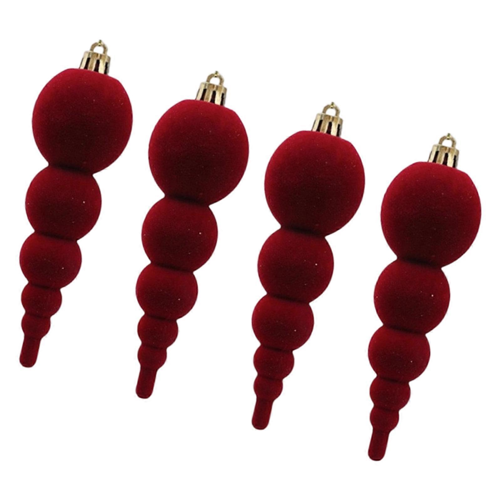 Set Of 4 Flocking Velvety Christmas Decorations Hanging Gourd Ornaments For Festival Styling Pendants Burgundy