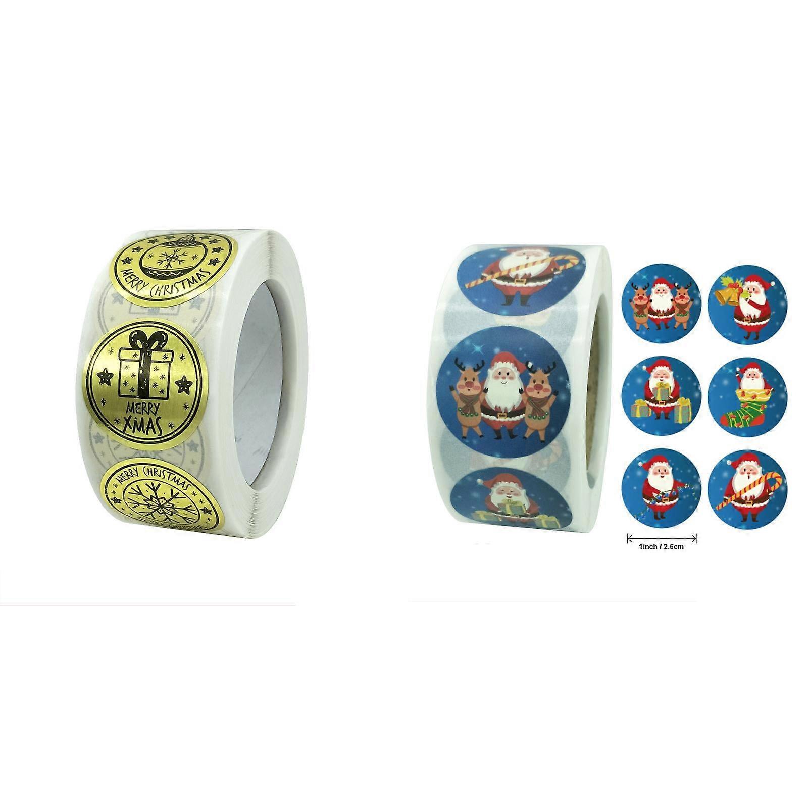 Christmas Stickers 500 Pcs Roll, Waterproof Holiday Gift Decor, compatible with Christmas Packaging & Cards