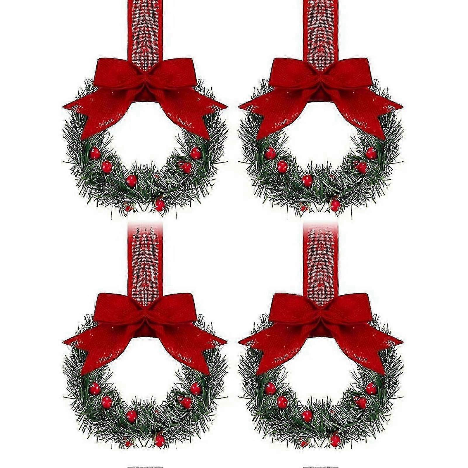 Mini Christmas Wreaths with Ribbon for Kitchen Cabinet and Window